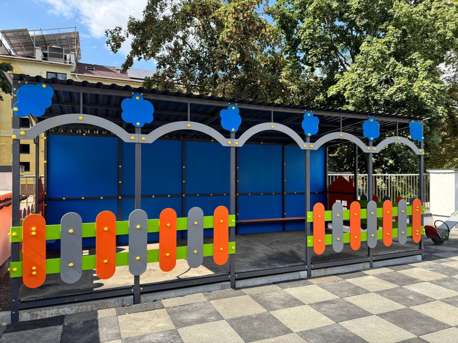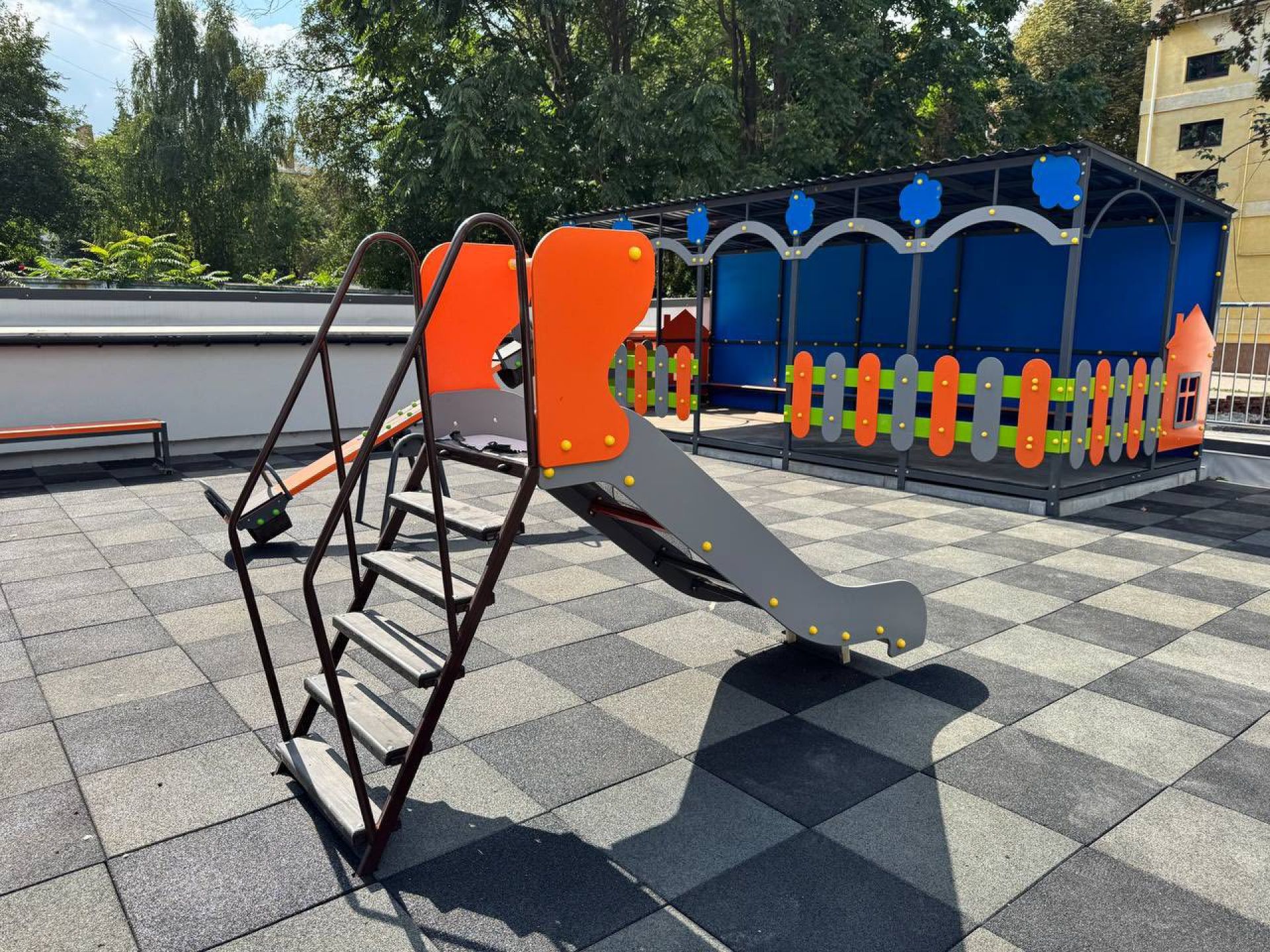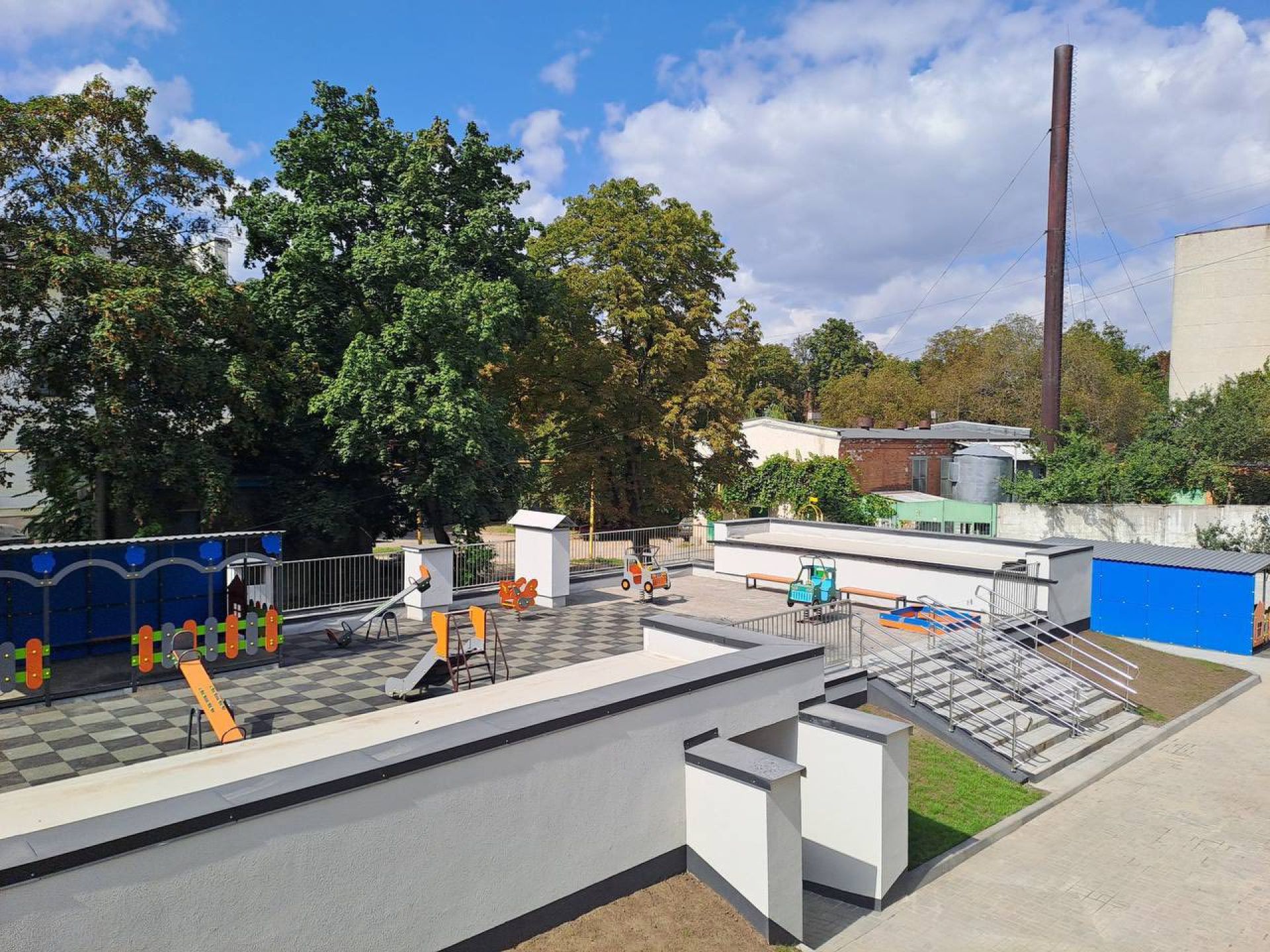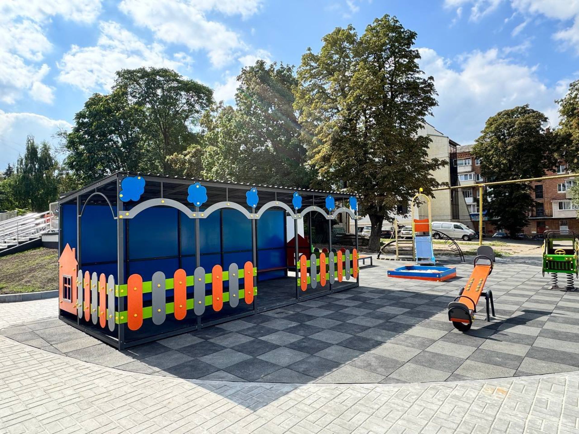 Над укриттям облаштували новий сучасний дитячий майданчик.