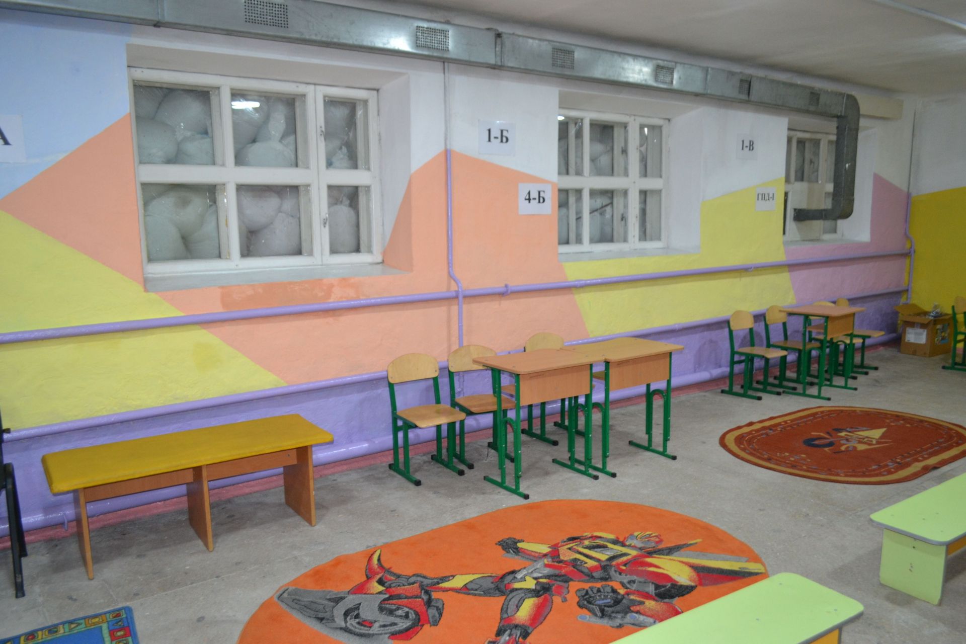 Територія укриття величезна - це 350 квадратних метрів. Воно може помістити до 500 учнів одночасно. На свіжо пофарбованих дверях надруковані написи “медичний працівник, психолог, соціальний педагог” і назви класів, як от 2-Б чи 4-А. Тобто все впорядковано, аби не виникало метушні під час тривоги. Директор одразу наголошує, школа навчається у дві зміни. Тому з переповненим укриттям проблем не виникне.