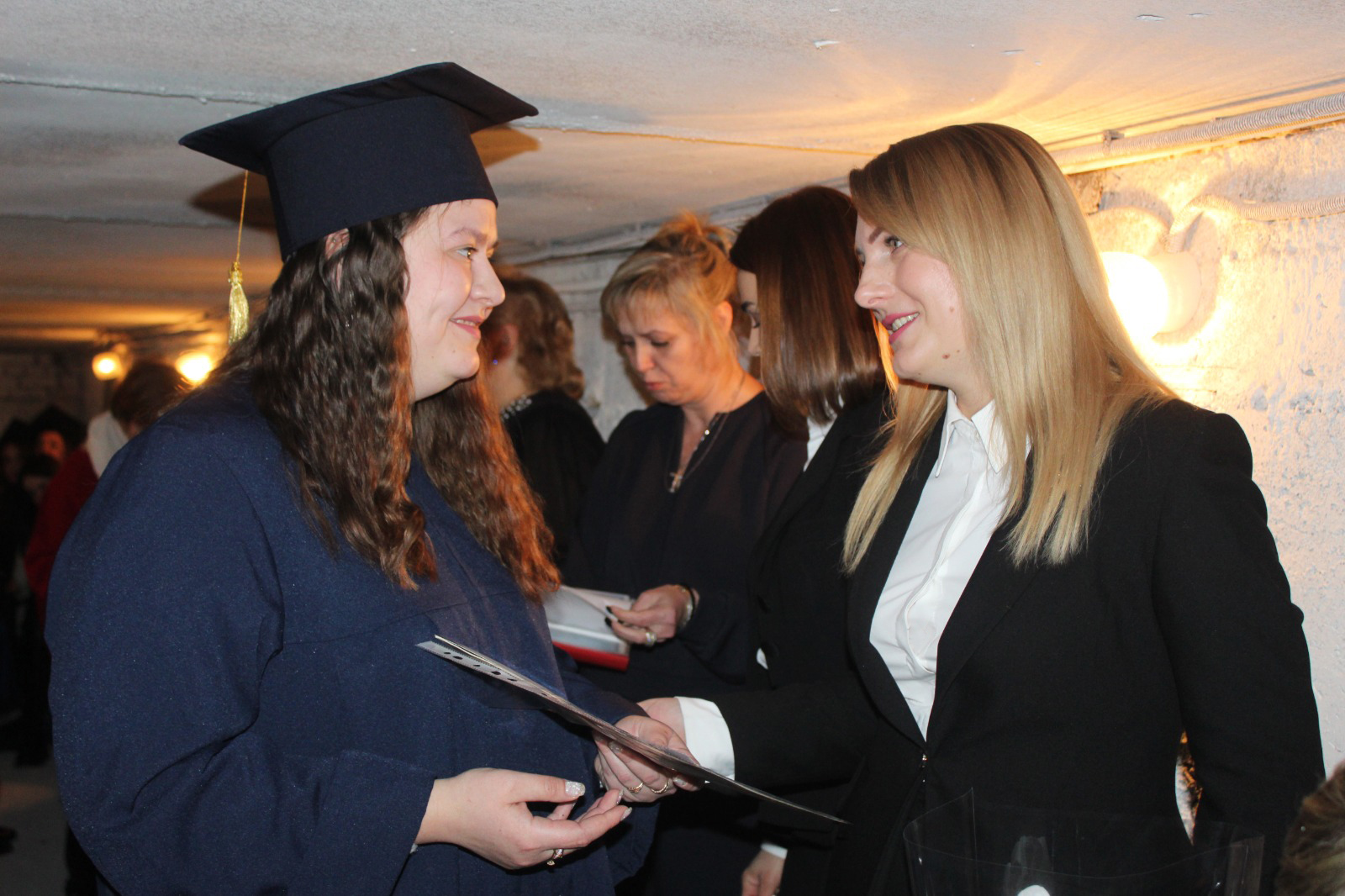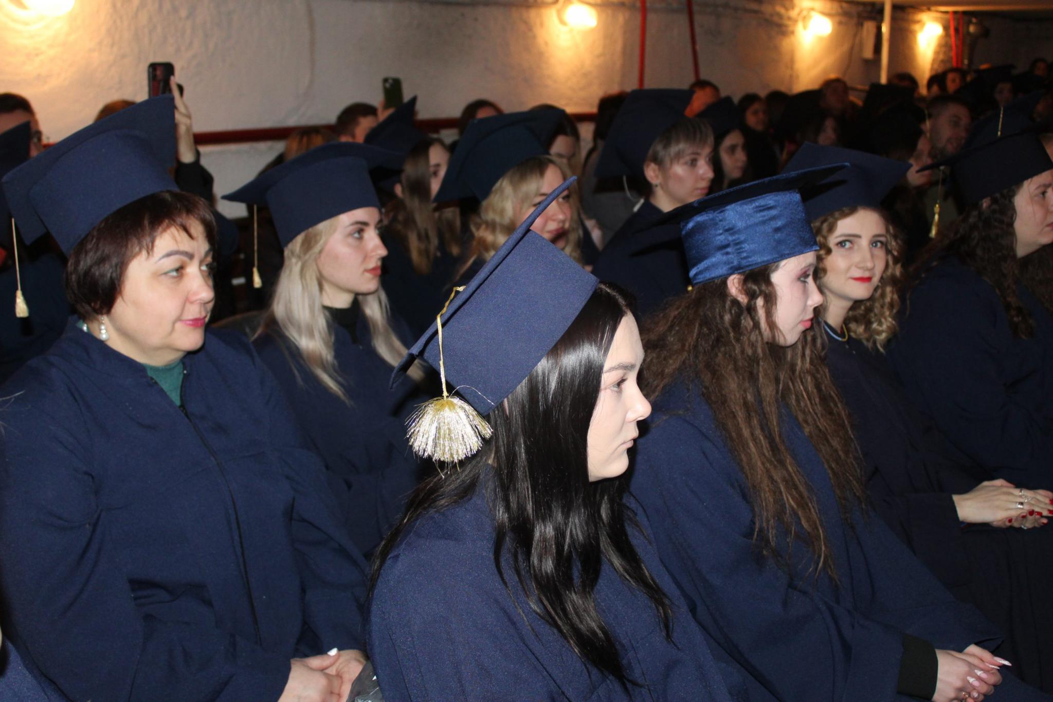 Фоторепортаж з церемонії вручення дипломів в укритті дивіться далі.