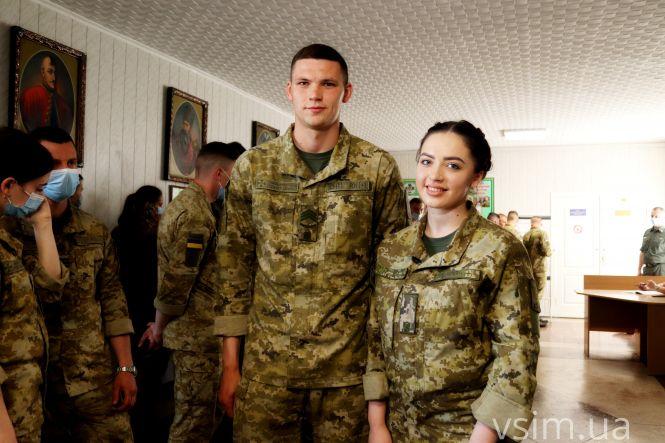 Подружжя курсантів - випускників можуть обрати собі одну частину з різними посадами. Кілька місяців тому одружилися Дмитро та Анна Нікітан. Їм по 21 рік. Чоловік з Харкова, він старшина групи та старший сержант. Жінка - з Хмельницького, курсантка. Вони двоє мають високі бали, тому вчора обирали вакансії одними з перших. Дмитро буде заступником начальника відділення інспекторів прикордонної служби з персоналу Окремого контрольно-пропускного пункту “Київ”. Анна служитиме на відділі прикордонної служби "Бориспіль" Окремого контрольно-пропускного пункту “Київ”.