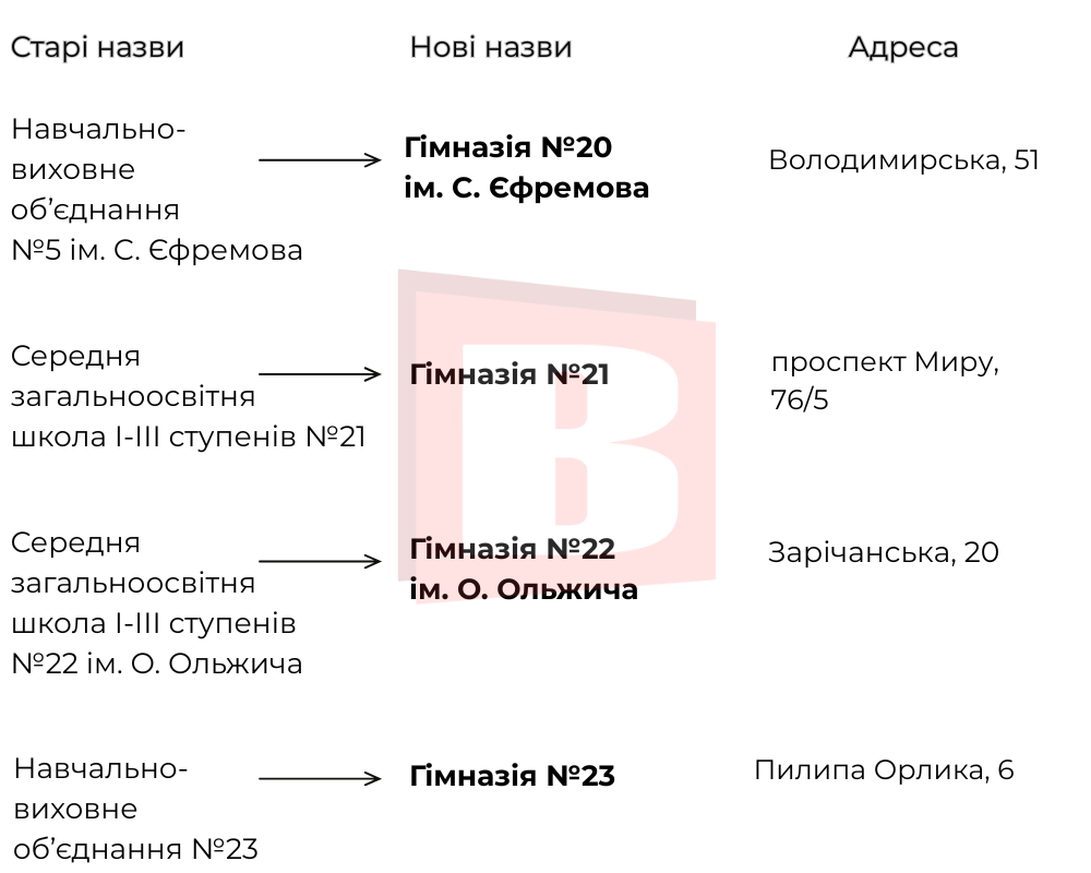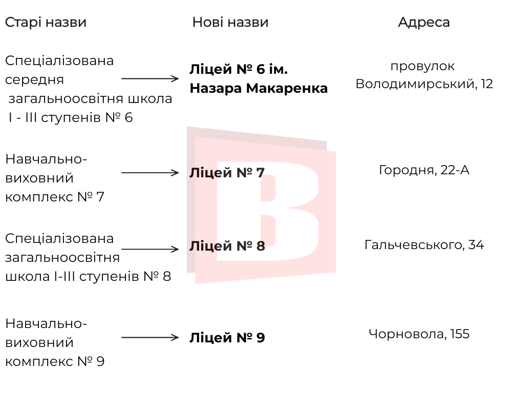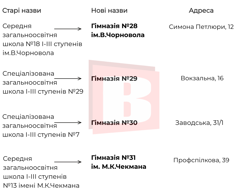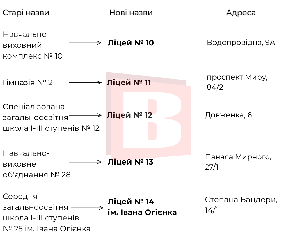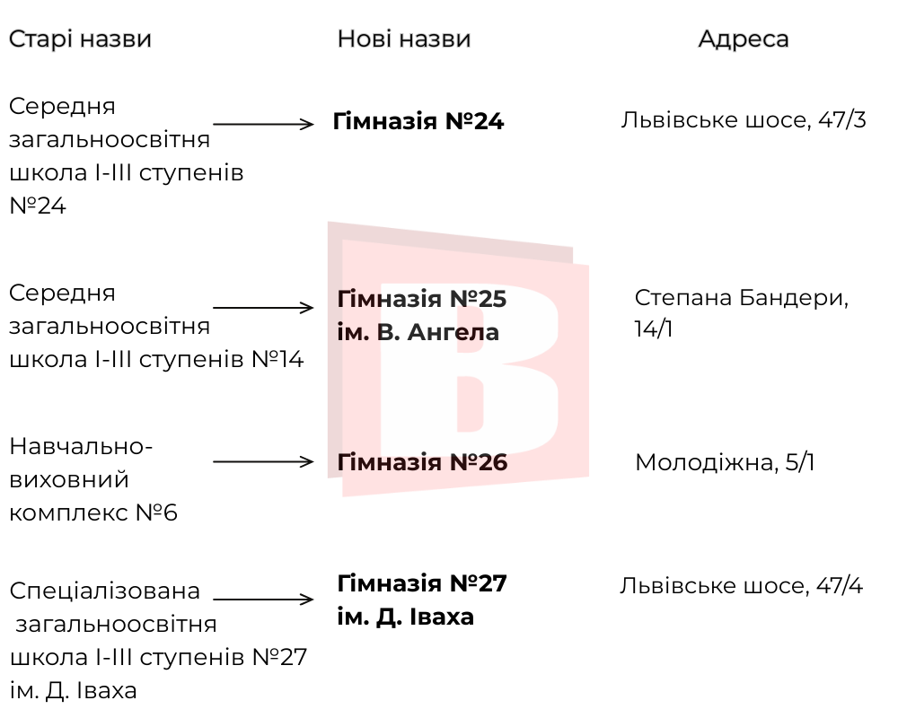 Саме тому підготували інфографіку із переліком освітніх закладів, назви яких змінено. Переглядайте список далі.