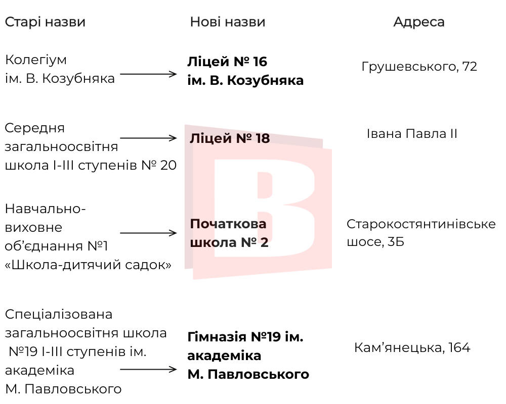 Як змінилися назви навчальних закладів Хмельницького (ІНФОГРАФІКА)