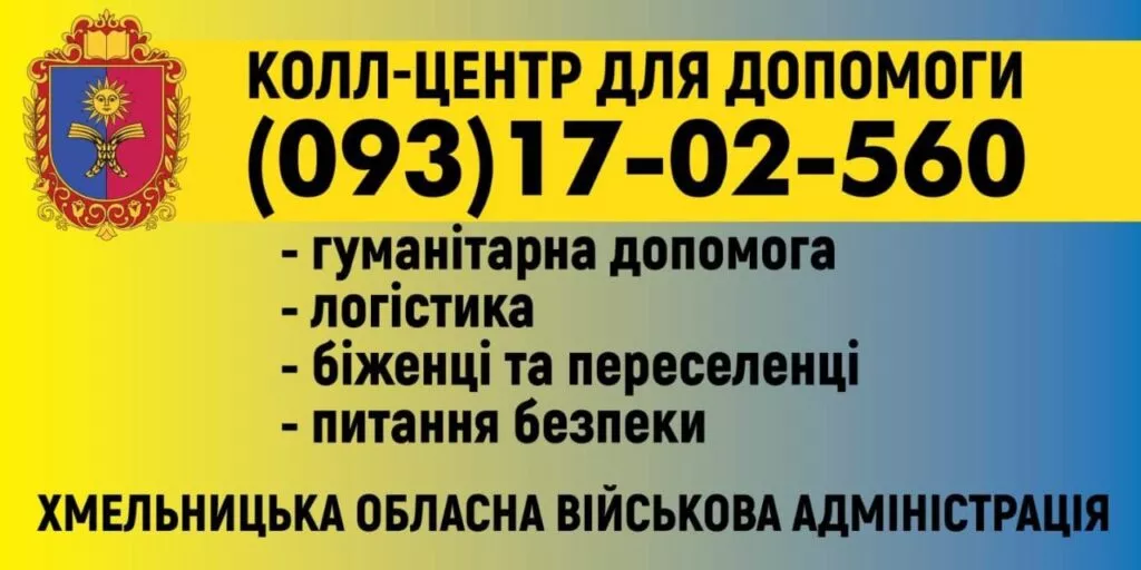 У Хмельницькій області запрацював кол-центр для допомоги. Туди можуть звертатися всі ті, хто її потребує чи хоче надати. Звернутися можна за наступним телефоном - 093 - 17 - 02 - 560.
