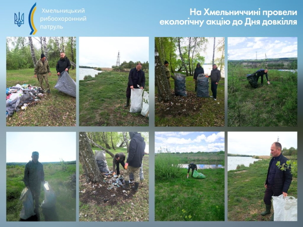 Працівники Хмельницького рибоохоронного патруля прибирали берегові смуги річок Південний Буг, Горинь та Дністер від сміття. У результаті таких заходів вдалося зібрати близько 350 кг побутових відходів.
