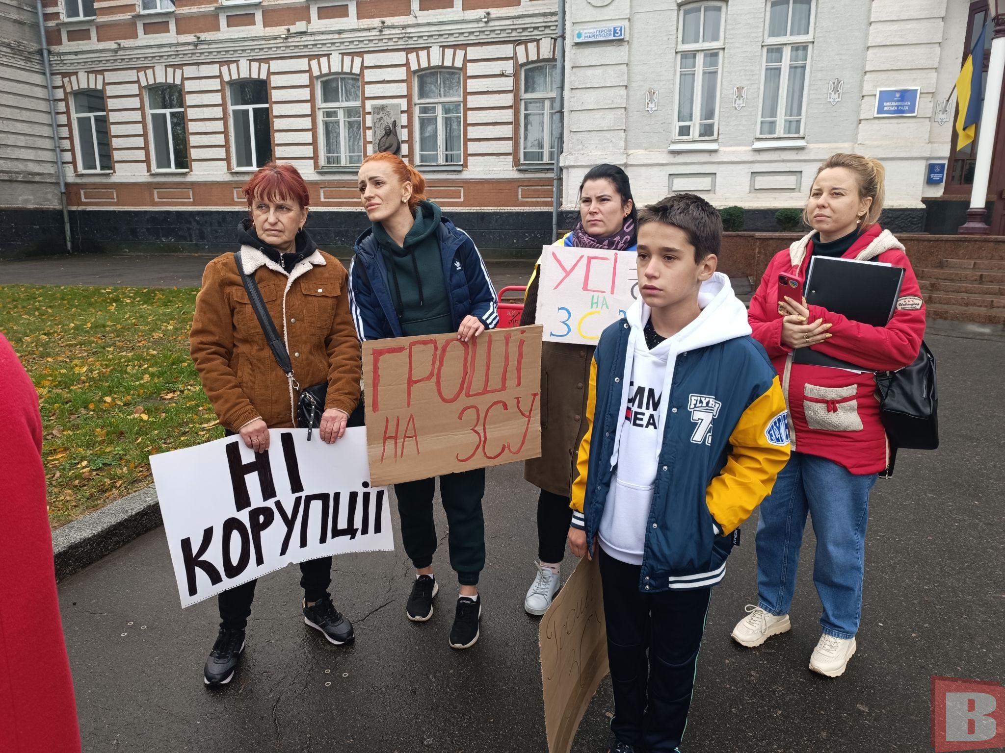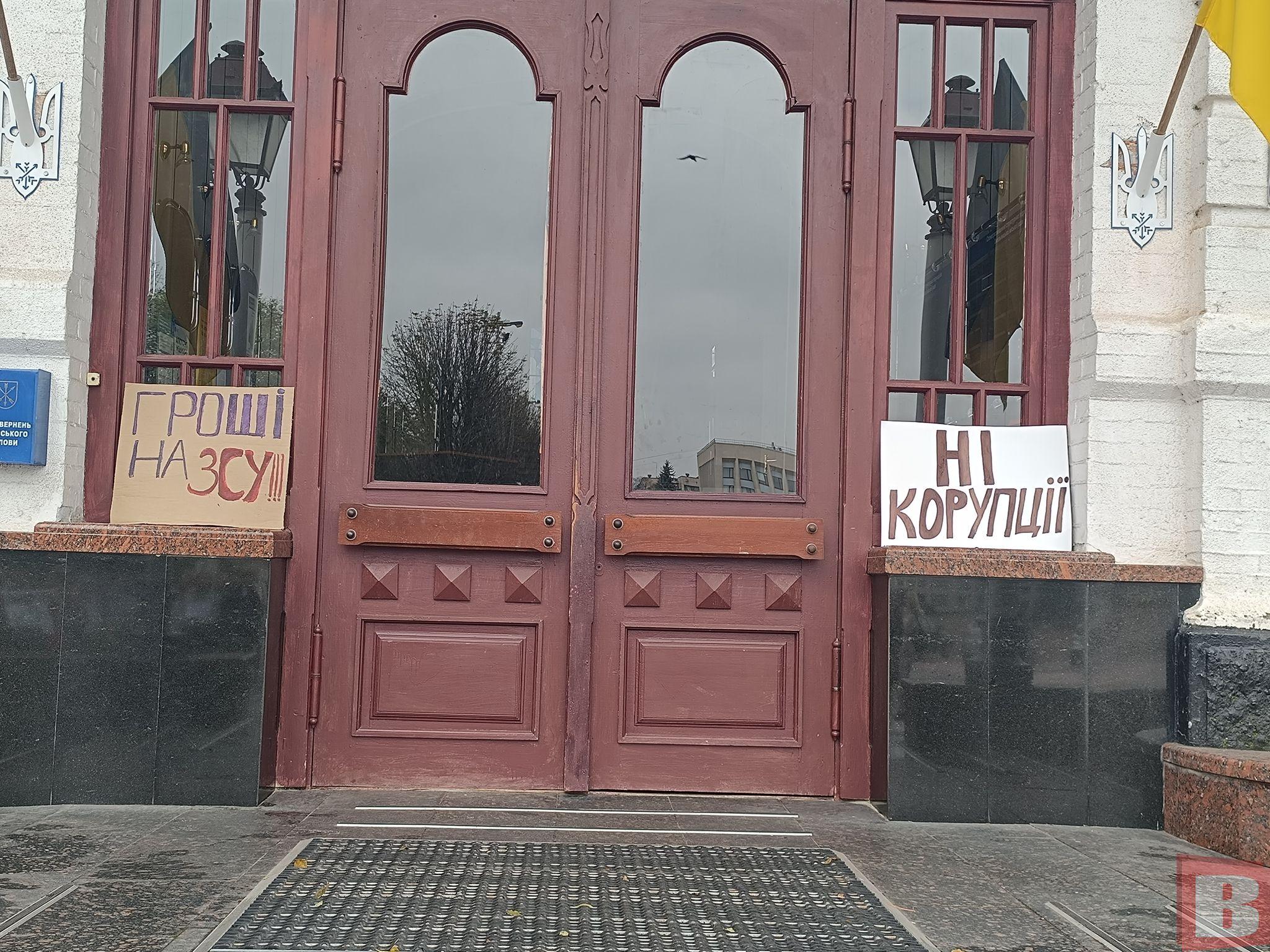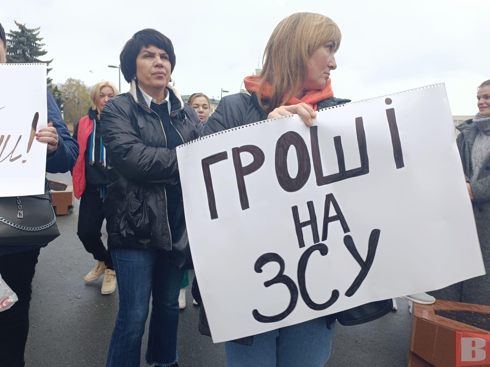 Під час пікету люди вигукували “Наші хлопці хочуть жити”, “Гроші на ЗСУ” і “Хмельницький, вставай!”. Збоку поруч з міською радою стояли представники поліції. Самі ж двері до мерії були зачинені.