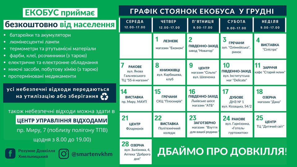 Дізнавайтесь на яких локаціях і коли стоятиме екобус та що можна до нього здати.