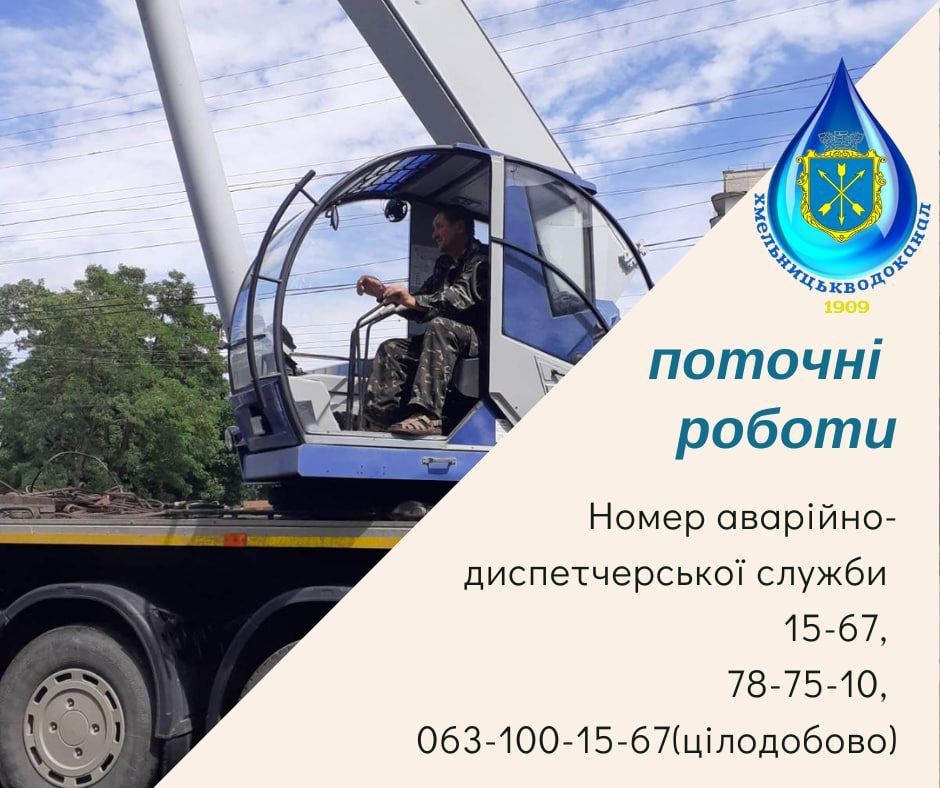 Ремонтні бригади “Хмельницькводоканалу” працюватимуть на кількох локаціях. Виконуватимуть наступні роботи: