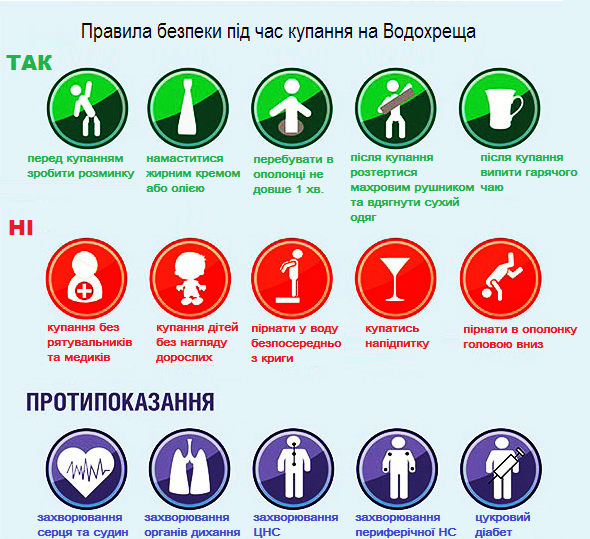 - не розпочинати Хрещенські заходи без представників служб порятунку і медичних працівників та купання дітей без нагляду батьків чи дорослих
