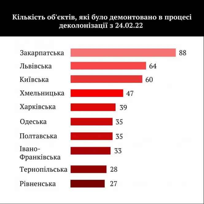 Нагадаємо, в Україні почали позбавлятись радянських пам’яток почали з 2014 року. Спочатку декомунізація поширювалась на перейменування вулиць. А з початку повномасштабної війни почали активно демонтовувати об’єкти радянщини. Зокрема, з початку вторгнення на Хмельниччині їх демонтували вже близько 50. Принаймні такі дані опублікували автори проекту “Деколонізація. Україна”.