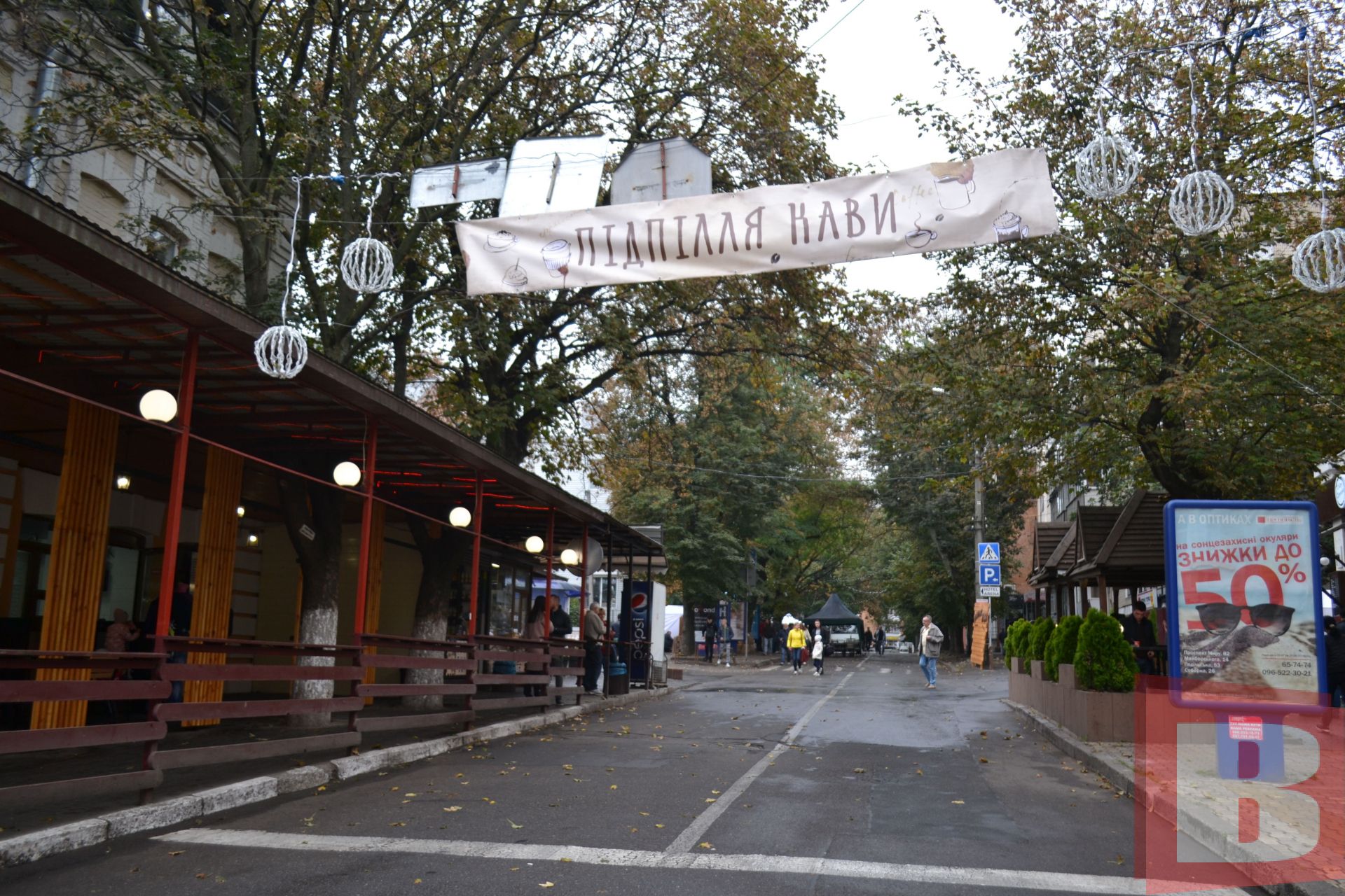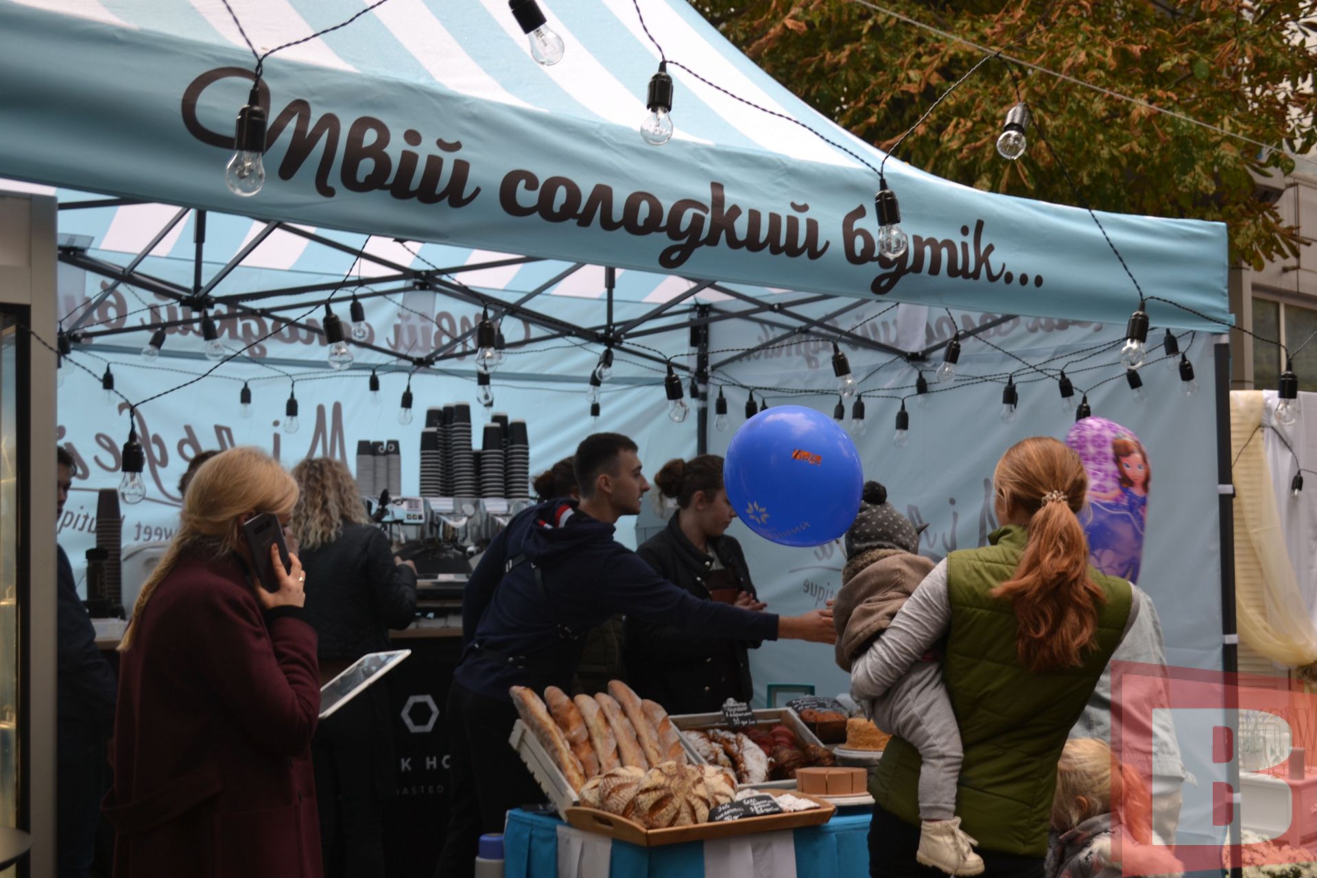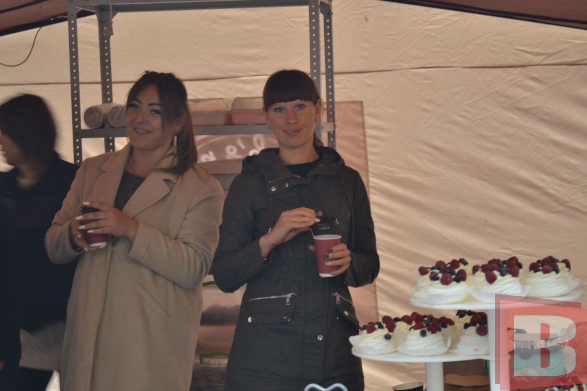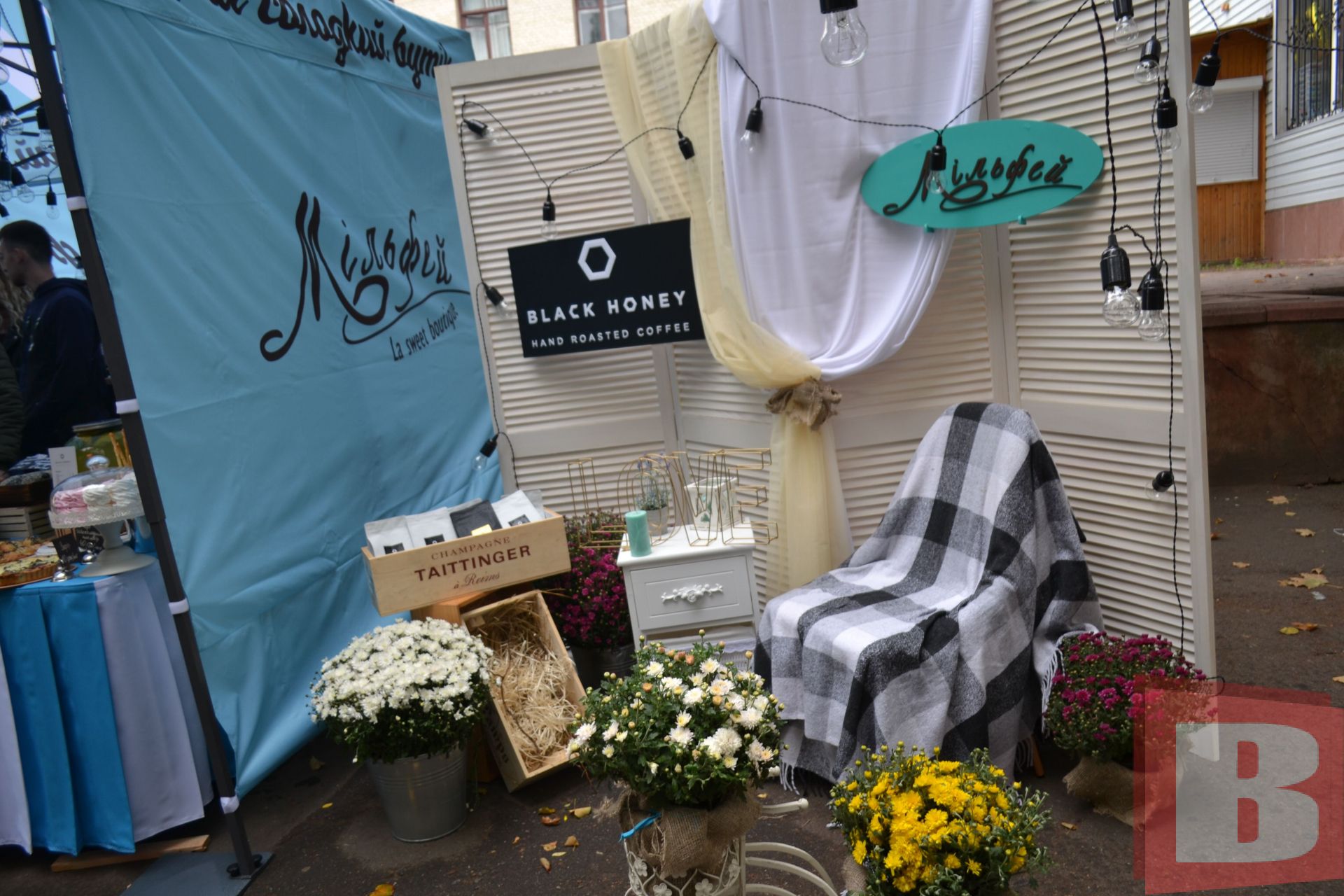 За кілька метрів від першої локації вже чути запашний аромат кави. Лине він із гастрофесту, що розташувався неполік “Рукавички” на Проскурівського підпілля. Тут є все для того, щоб відпочити від метушні, зігрітися та поласувати смачними кондитерськими виробами від кращих кав’ярень міста.