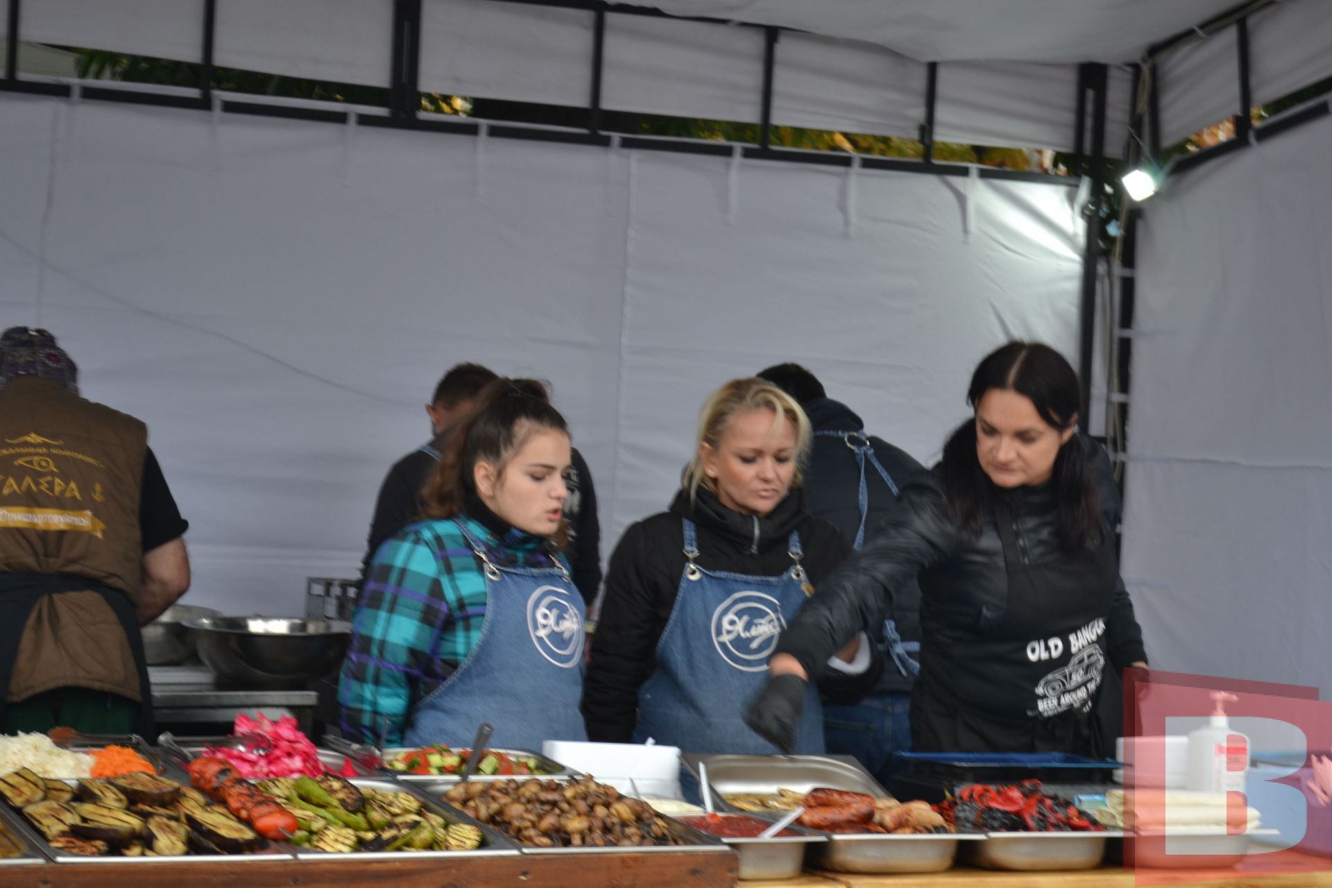 За сценою, праворуч від кінотеатр, розташувався фуд-корт. Тут смажать шашлик, овочі та рибу на грилі, варять бограч та частують грузинськими стравами. В центрі стоять столи та стільчики. Тож поласувати смачненьким можна з приємним видом на відкриту “кухню”. Є на фуд-корті і справжня козацька кухня. Там стоять велитенські чани, де варять традиційні українські страви.