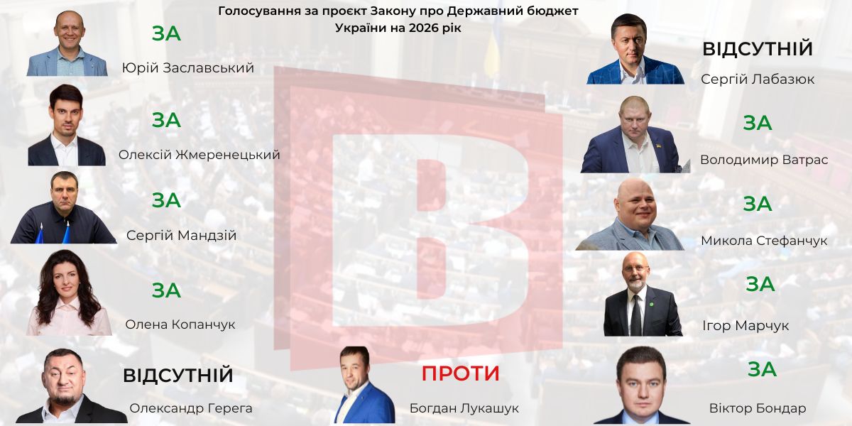 Єдиним, хто натиснув кнопку «ПРОТИ» став Богдан Лукашук, який став народним депутатом у грудні 2024 року. До цього був обранцем міської ради, син Олега Лукашука — депутата Хмельницької обласної ради, який раніше теж був парламентарем.