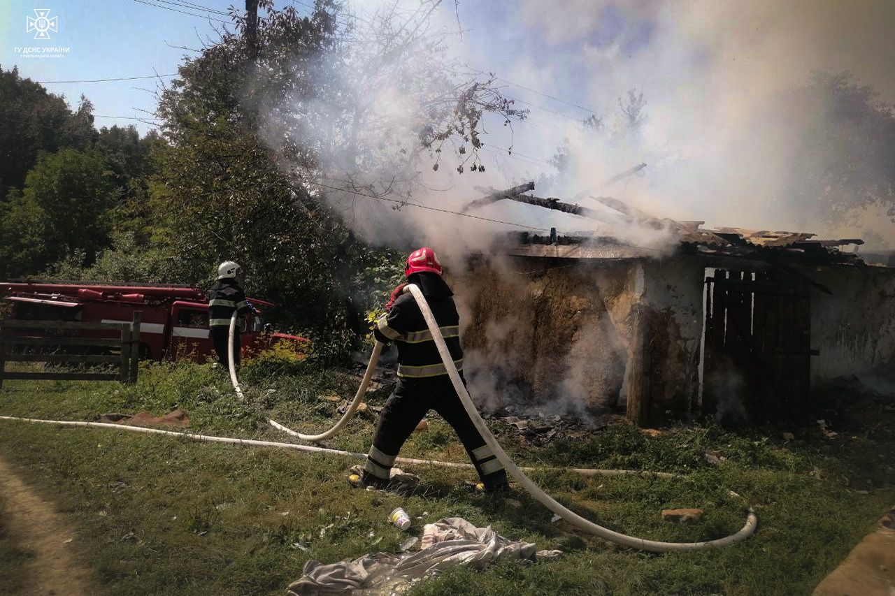 Ще одне займання господарчої споруди, з тієї ж причини, виникло в селі Гната Хмельницького району о 12:36. Вогонь приборкали деражнянські надзвичайники.