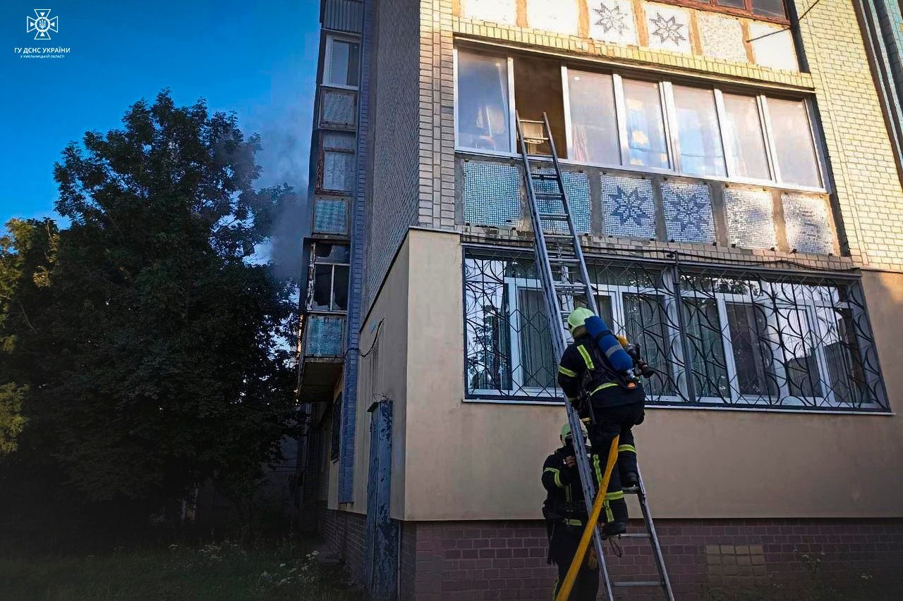 Не пройшло й години, як на вул. Князів Коріатовичів у місті Кам’янець-Подільський загорілося в квартирі на другому поверсі дев’ятиповерхового будинку. Гасили пожежу через вікно та з під’їзду будинку. Вогонь приборкали на площі 40 кв.м, не допустивши розповсюдження на суміжні квартири. Причина пожежі встановлюється.