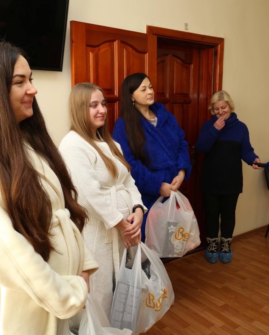 Він привітав щасливих породіль та подарував їм традиційно подарунки від міської ради.
