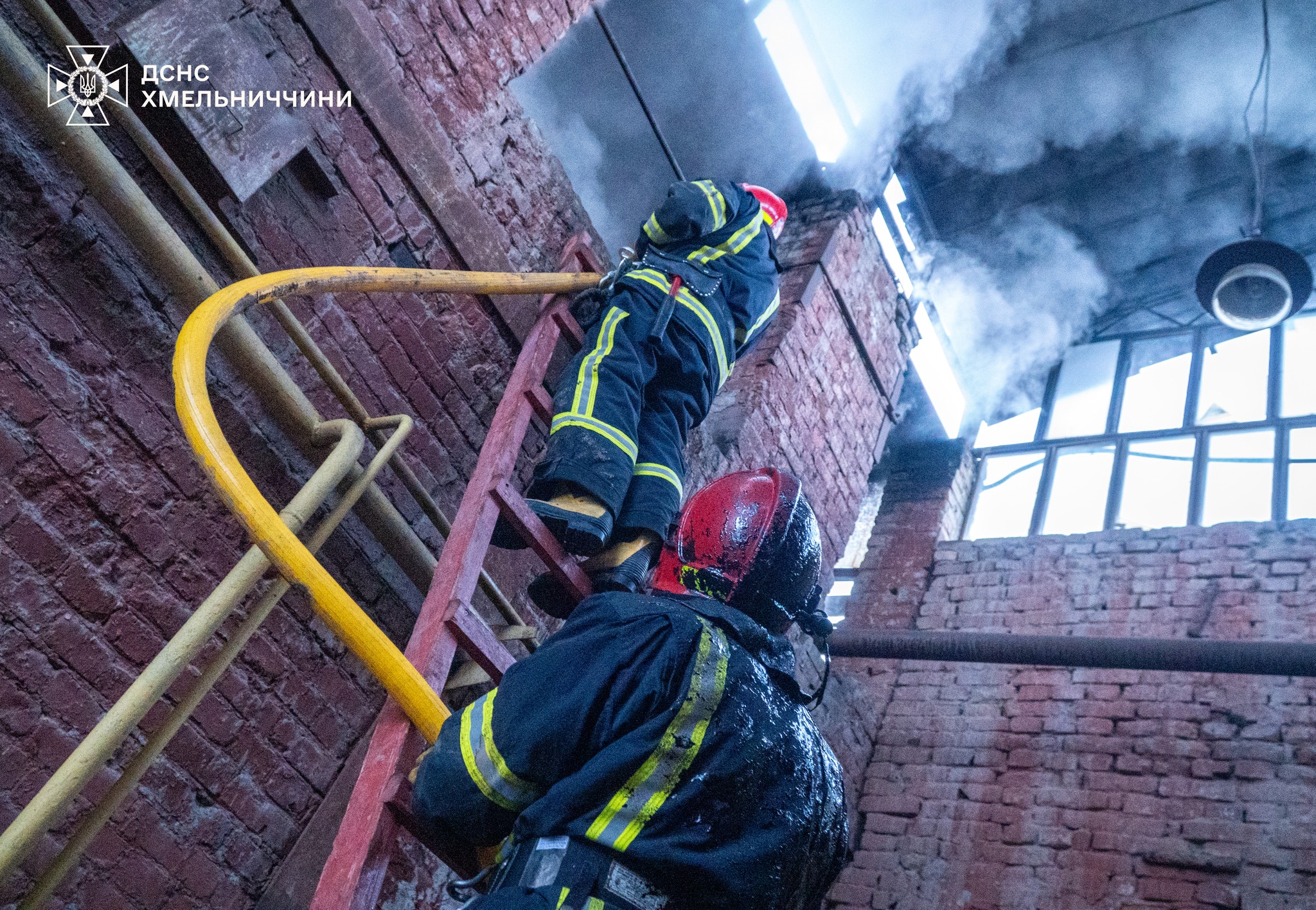 А от у Хмельницькому сталася пожежа виробничого цеху на території асфальтного заводу. Вогнеборці змогли не допустити поширення вогню на інші споруди підприємства.