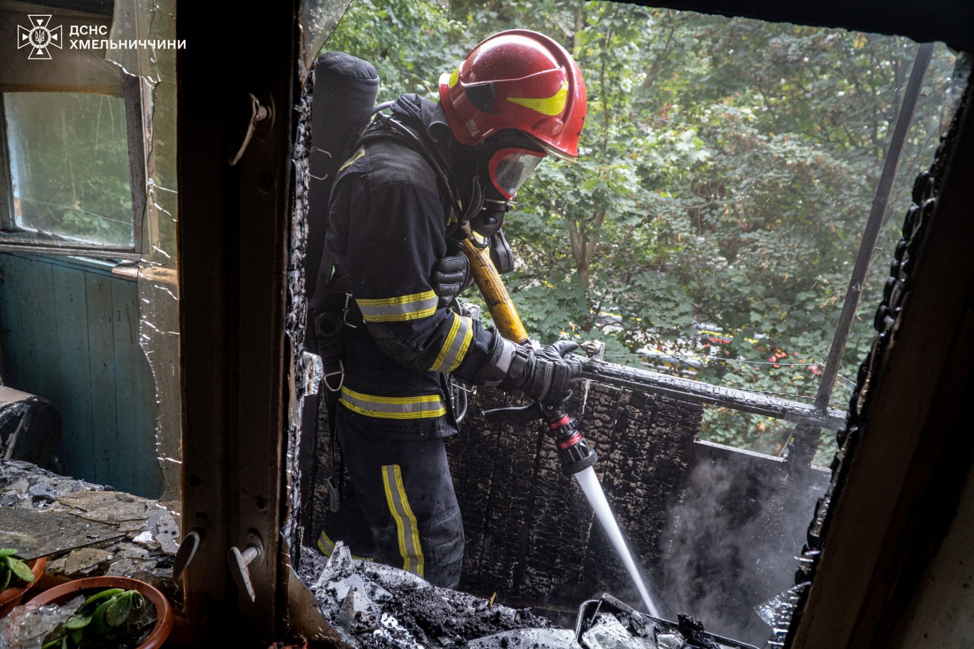 Сьогодні, 18 вересня, у Хмельницькому сталася пожежа у квартирі багатоповерхівки. Під час гасіння займання вогнеборці врятували людину. Про це повідомили у Головному управлінні ДСНС у Хмельницькій області.
