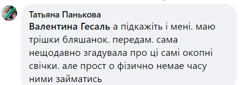 Відтак, Інна просить хмельничан збирати консервні бляшанки, адже саме з них виготовлятимуть окопні свічки.