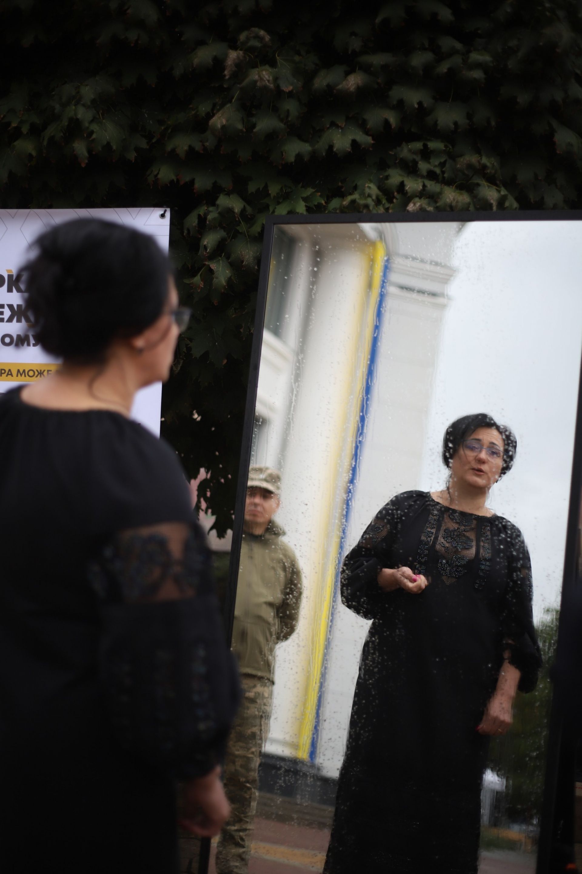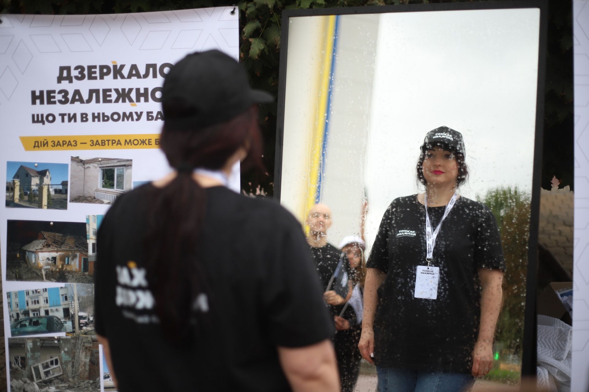 У Хмельницькому активісти обласного осередку ГО «Захист держави» пропонували учасникам заходу поділитися своїми історіями. Кожен, дивлячись у дзеркало, міг розповісти про власні здобутки, плани та конкретні справи, спрямовані на підтримку країни в умовах війни.