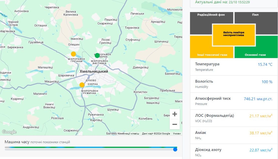 Згідно із даними https://eco-city.org.ua наразі якість повітря несприятлива у мікрорайоні Гречани та Ружична.