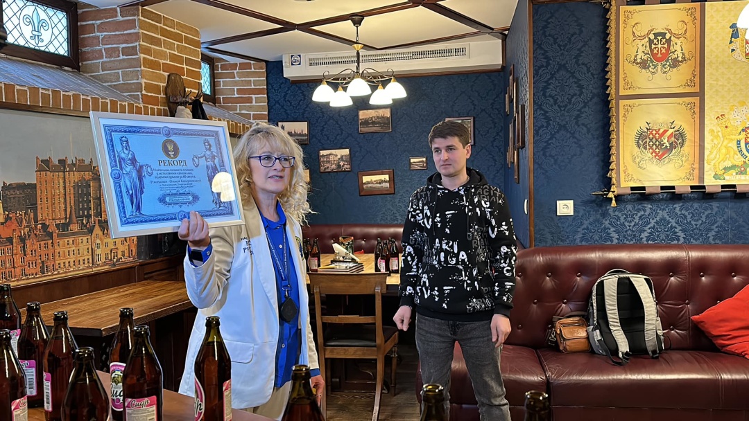 "Олексій Кордзіховський встановив національний рекорд, відкриваючи зубами пляшки з металевими кришками. За хвилину він відкоркував 52 пляшки замість заявлених 30-ти. Раніше рекорду в цій номінації не було”, – каже Вєтрова.