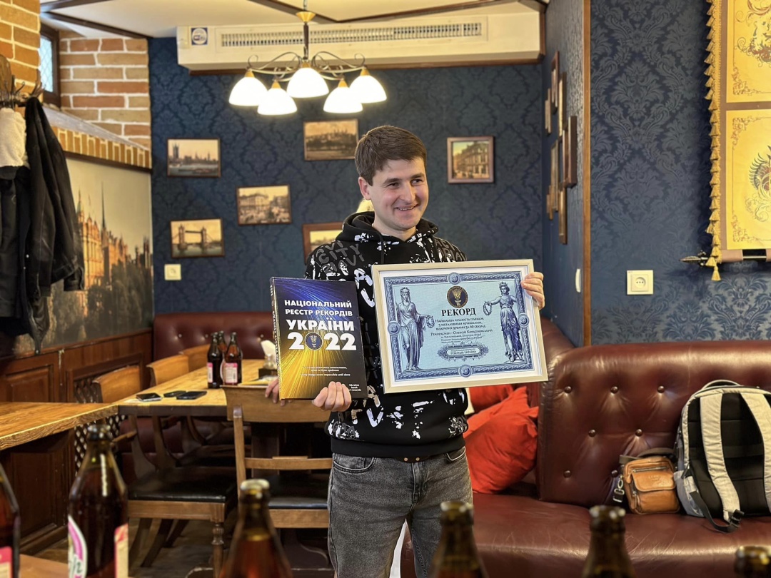 Хмельничанин Олексій Кордзіховський за хвилину відкрив зубами металеві кришки понад пів сотні пляшок. За кожну пляшку збирав донати на дрон для ЗСУ. Таким досягненням чоловік встановив національний рекорд.