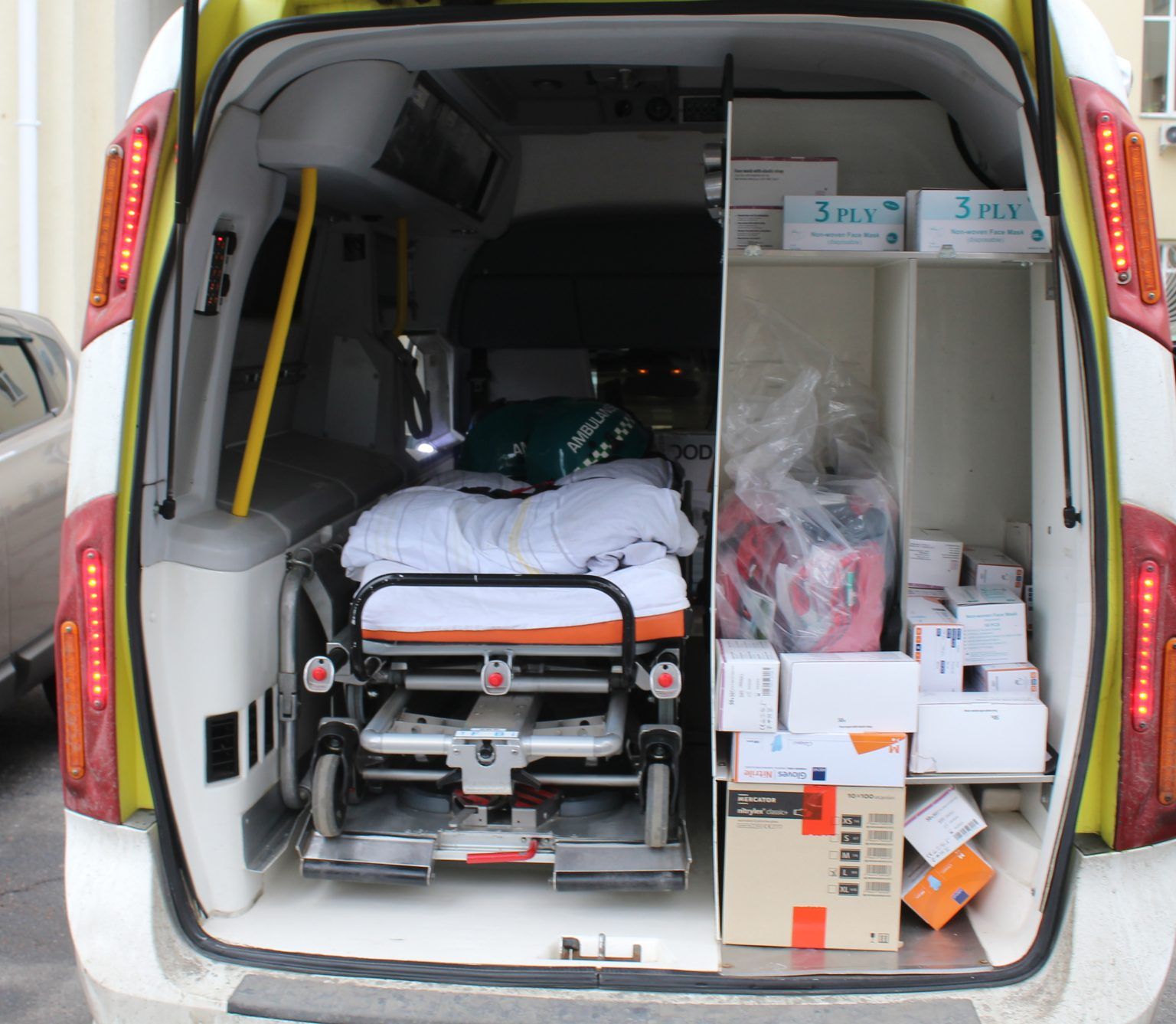 «Volvo» розраховане для перевезення одного хворого, оснащене реанімаційним обладнанням та всім необхідним для його безпечного транспортування.