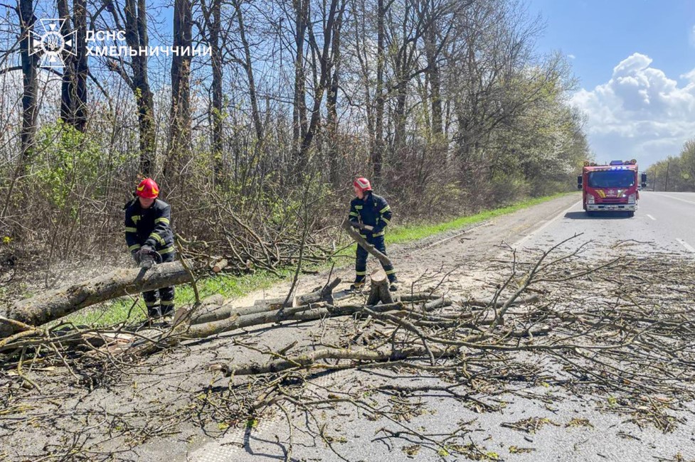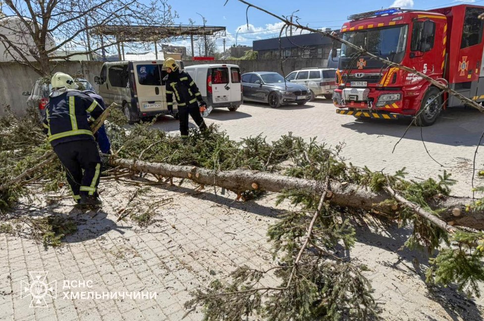 У Хмельницькому сьогодні, 26 квітня, спостерігається особливо сильний вітер. Синоптики раніше прогнозували для Хмельниччини пориви швидкістю до 25 метрів за секунду. Через негоду на території Хмельницького та області ставалися падіння дерев. Станом на 17:00 рятувальники прибрали 29 повалених дерев. Крім того, вони тричі виїжджали на демонтаж аварійних елементів балконів.