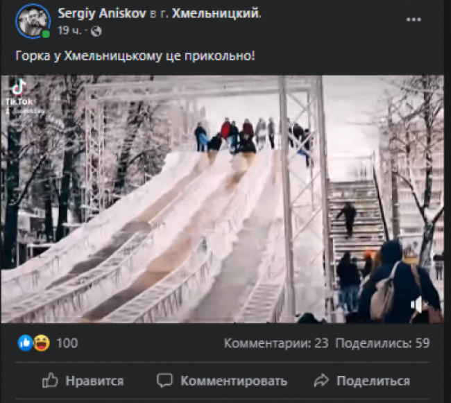 Про те, як дітиська розважаються на незакінченій конструкції тюбінгу, також стали повідомляти в соцмережах. Хмельничани публікували на своїх сторінках фото й відео.