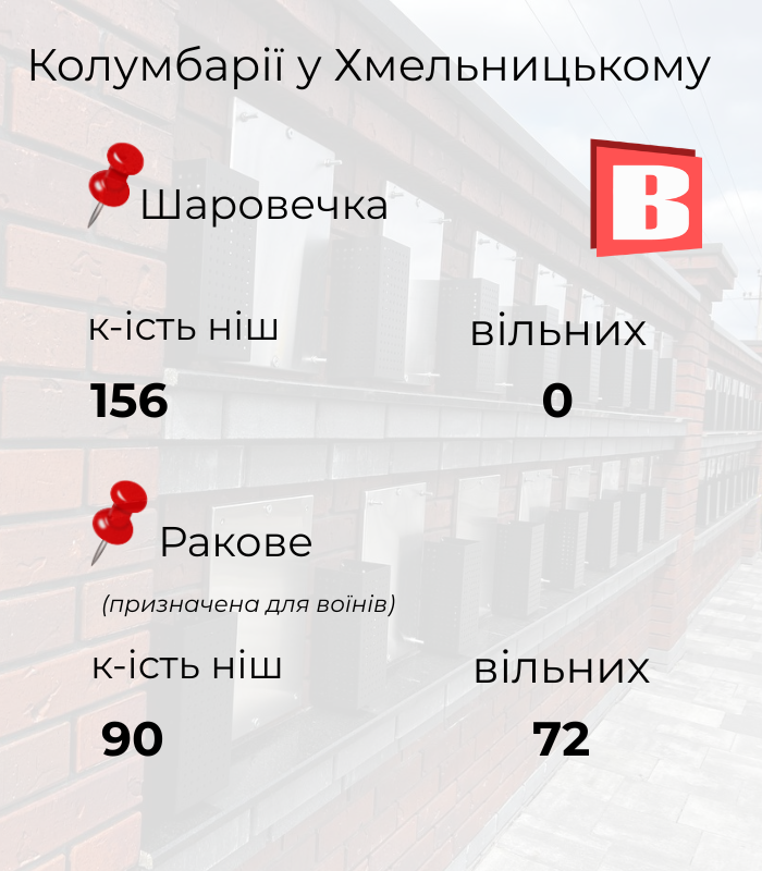 Станом на сьогодні, 7 квітня, в Хмельницькому діє два колумбарії. Однак у них різне призначення, а ситуація із вільними нішами суттєво відрізняється одна від одної.