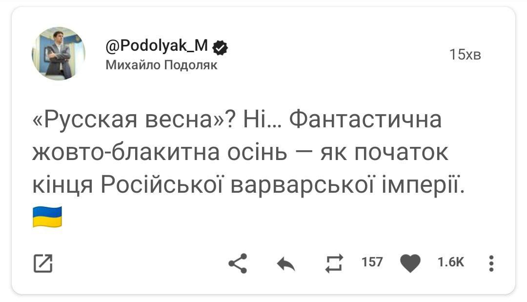 Цього тижня українці жартували про те як “героїчно” тікають росіяни з окупованих територій, прославляли успішний контрнаступ українських воїнів та генерала Залужного, реакцію недолугих росіян та оновлені дані Генштабу.