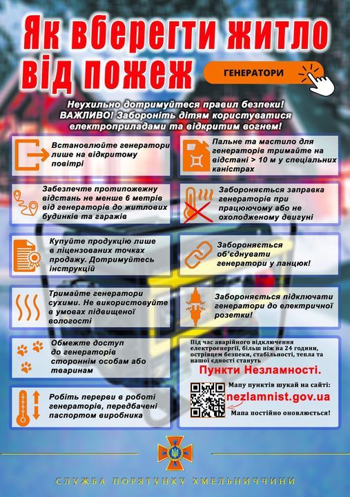 - під час використання електрогенераторів необхідно дотримуватися правил безпеки;