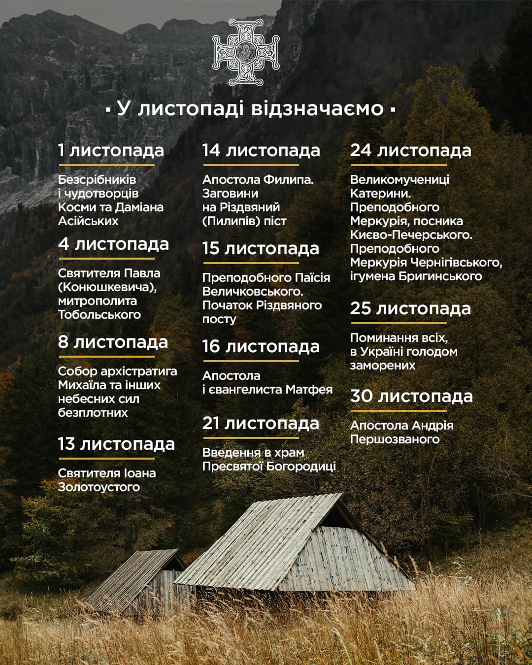 Перелік церковних свят у листопаді