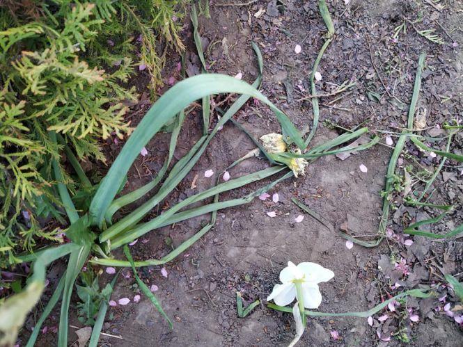 На ділянці, де ростуть тисяча тюльпанів і тисяча нарцисів, відвідувачі повитягували сотню цибулин. Садівниці, які їх закопували у землю, вважають, що це зробили діти. Адже квіти не поцупили, а лише витягнули. Жінки з обуренням розповіли, що найбільше страждають квіти, які посаджені навколо популярних фотозон - магнолій та китайської вишні.
