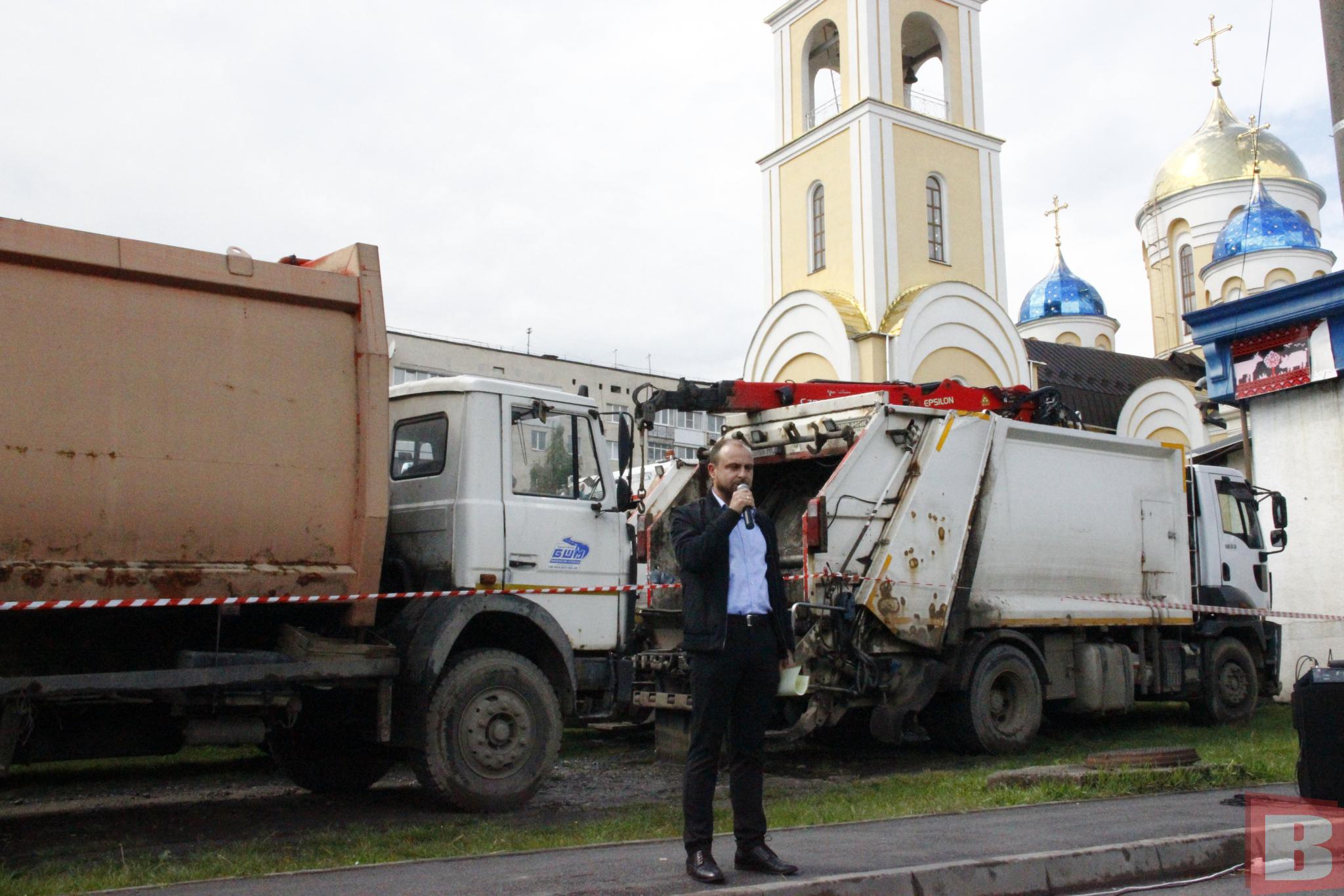 Акція розпочалася о 15:00 – за дві години до запланованого приїзду Онуфрія. На мітинг зібралося більше сотні хмельничан. Також на місце звезли десятки одиниць спецтехніки, серед яких і сміттєвози.