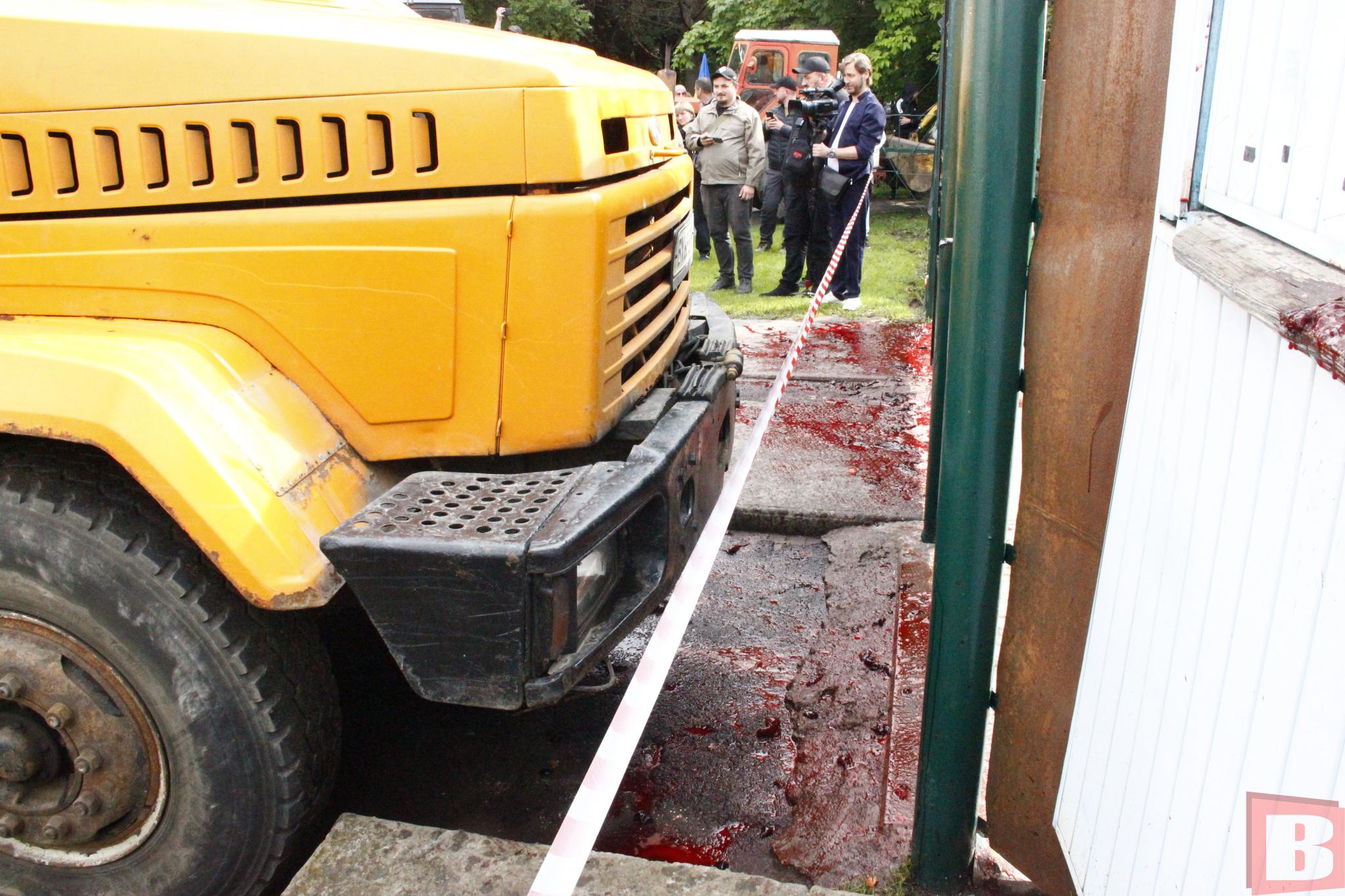 Після цього декілька вантажівок, які стояли на майданчику, приїхав в притул до воріт, щоб прихильники УПЦ МП не могли зайти до собору.