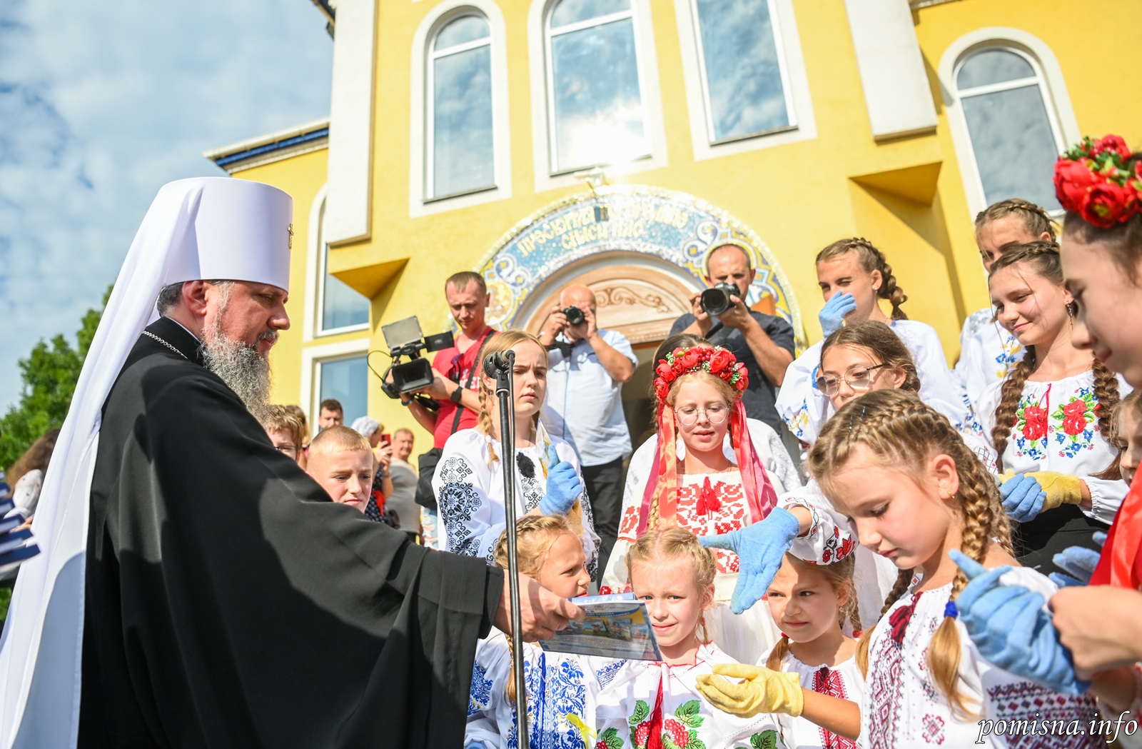 Митрополит Київський і всієї України Епіфаній сьогодні, 9 серпня, з візитом прибув на Хмельниччину. Владика освятив новозбудовану дзвіницю та помолився за полеглих воїнів.