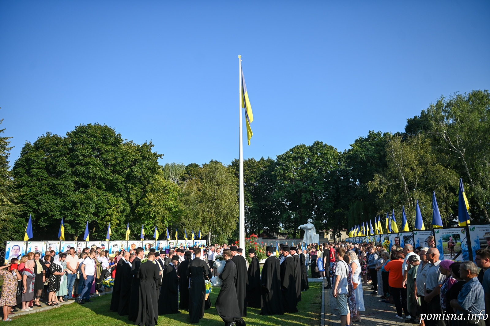 Згодом на місцевій Алеї героїв Предстоятель разом з єпископатом, духовенством, представниками влади і вірянами помолився за полеглих захисників України та поклав квіти до меморіалу на їх честь.