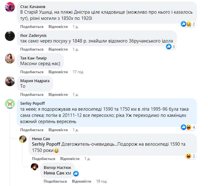 А хмельницький історик Сергій Шпаковський навіть оприлюднив світлини з надгробками й людськими черепами. Зазначив, що зроблені вони на березі Дністра, в місці затопленого колишнього села Лоївці, що на Новоушиччиі.