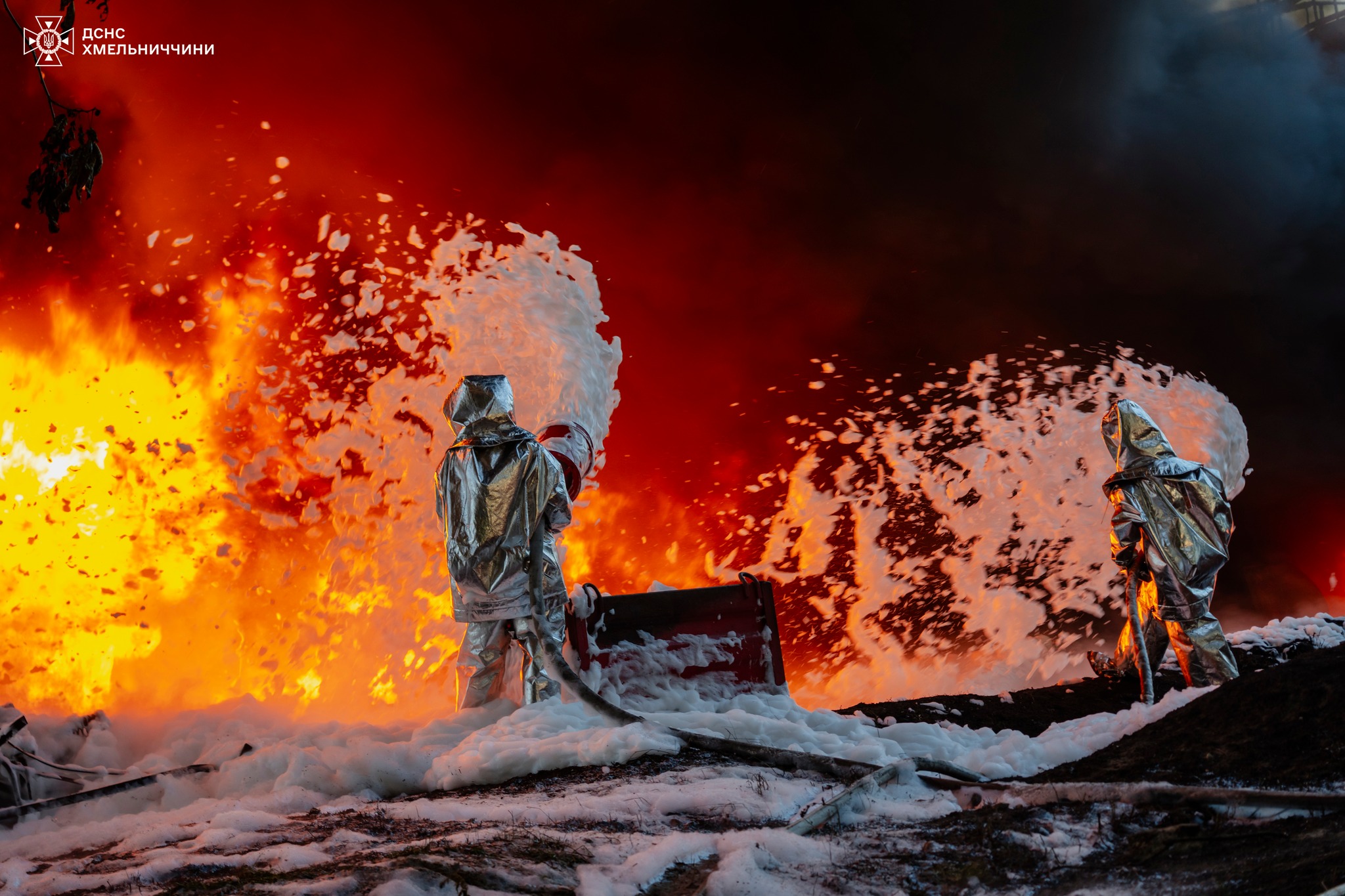 На Хмельниччині 55 рятувальників гасили пожежу внаслідок атаки «дрона» (ФОТО, ВІДЕО)