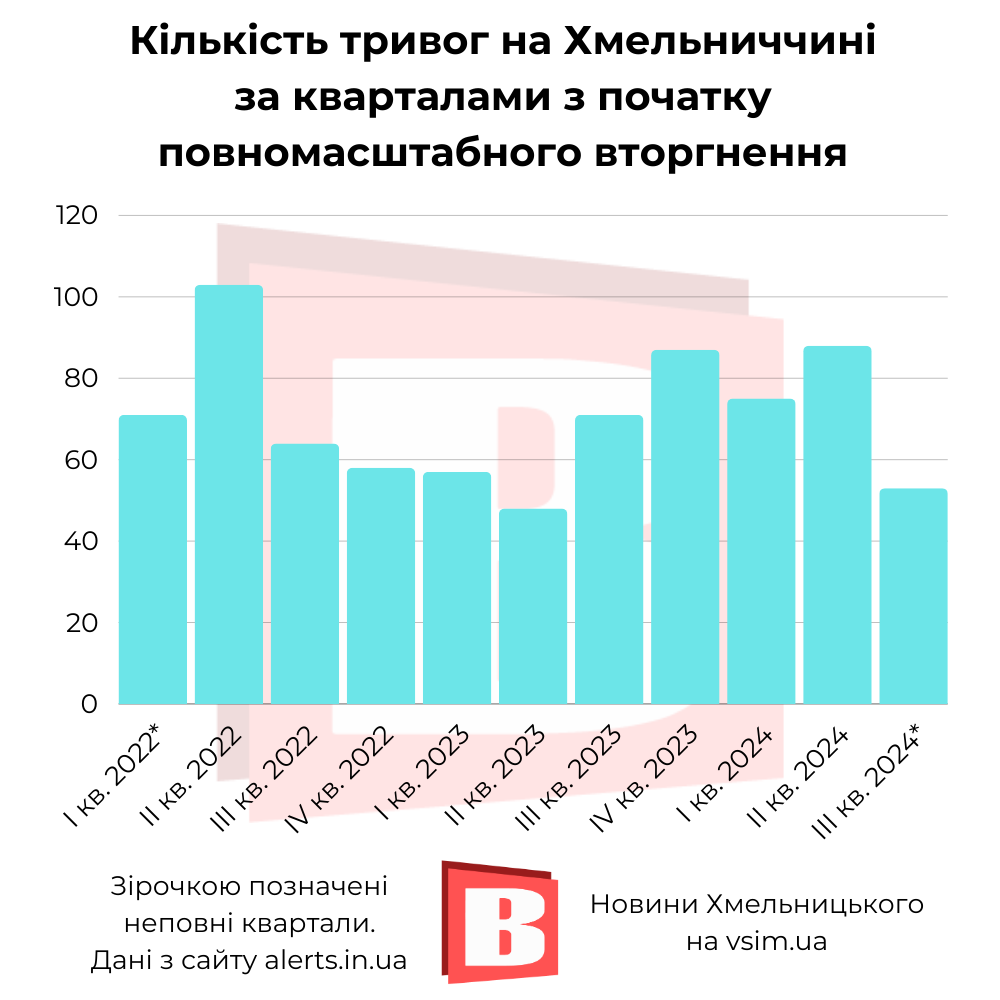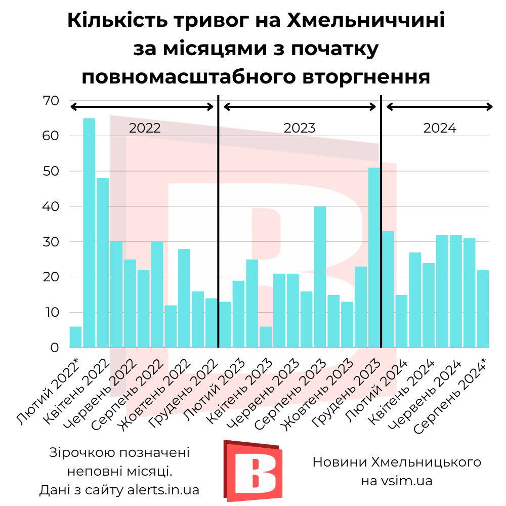 На Хмельниччині було 775 тривог. Коли найчастіше (ІНФОГРАФІКА)