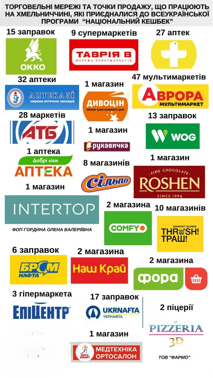 Для детальної інформації про точки, що працюють у Хмельницькій області в рамках програми "Національний кешбек", дивіться інфографіку.