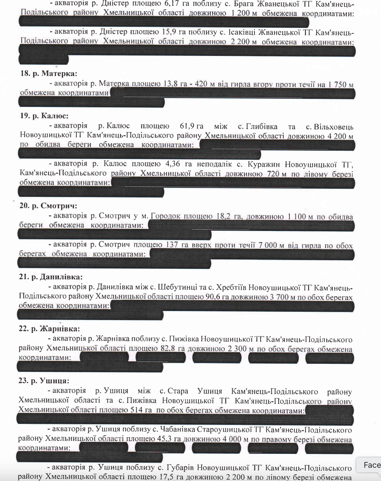 Зокрема, це наступні ділянки: