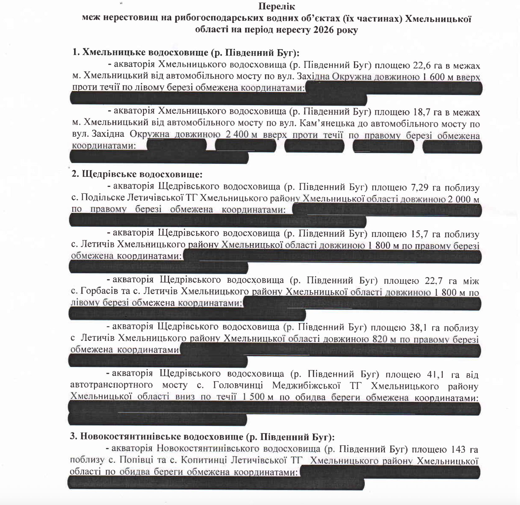 Перелік нерестовищ