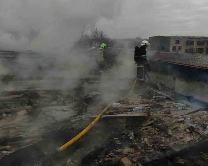 "Загальна площа пожежі складала 300 кв.м. Крім того, існувала загроза розповсюдження вогню на всю площу споруди та на поруч розташовану будівлю", - поінформували у ГУ ДСНС України у Хмельницькій області.