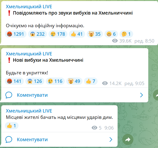 — Друзі, протягом останнього сигналу тривоги ви могли чути звуки вибухів. Запевняю, що у місті все спокійно. Проте, вибухи відбувались зовсім недалеко, — наголосив Михайло Посітко.