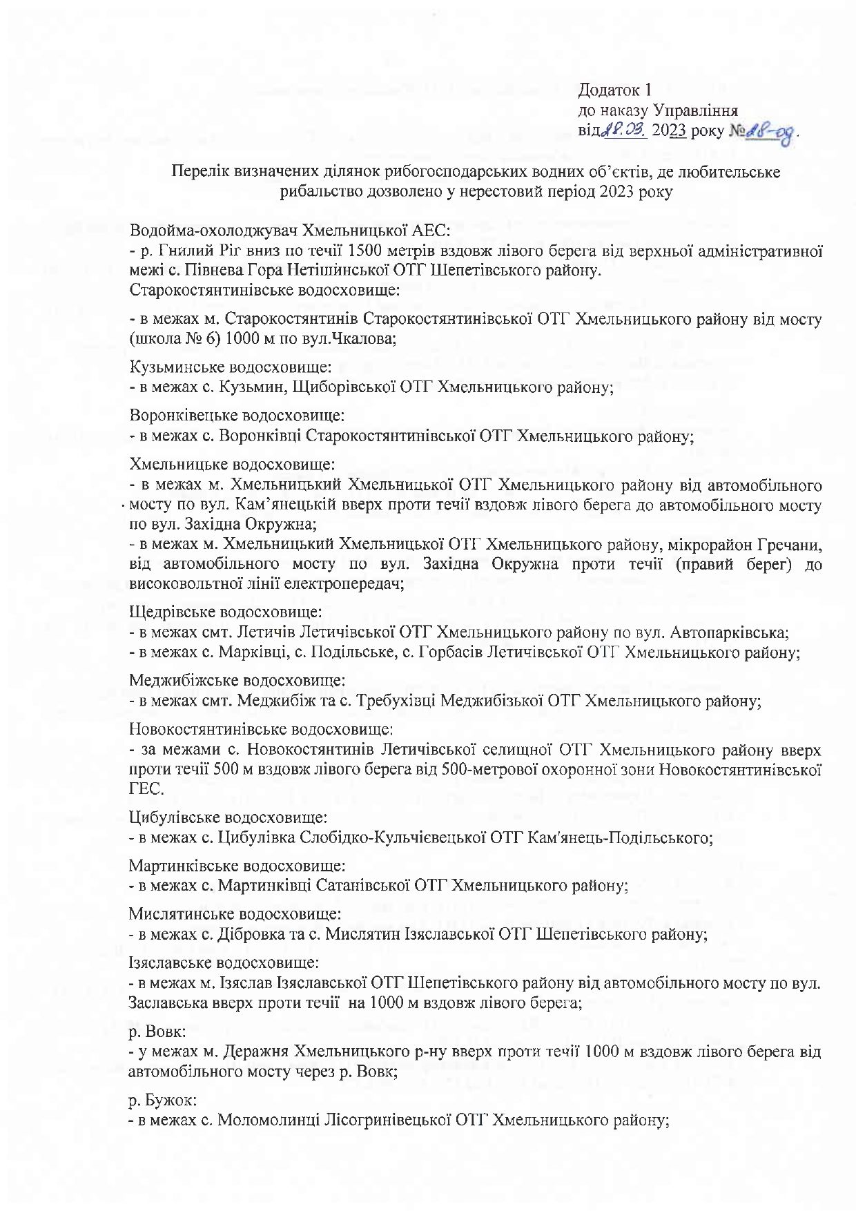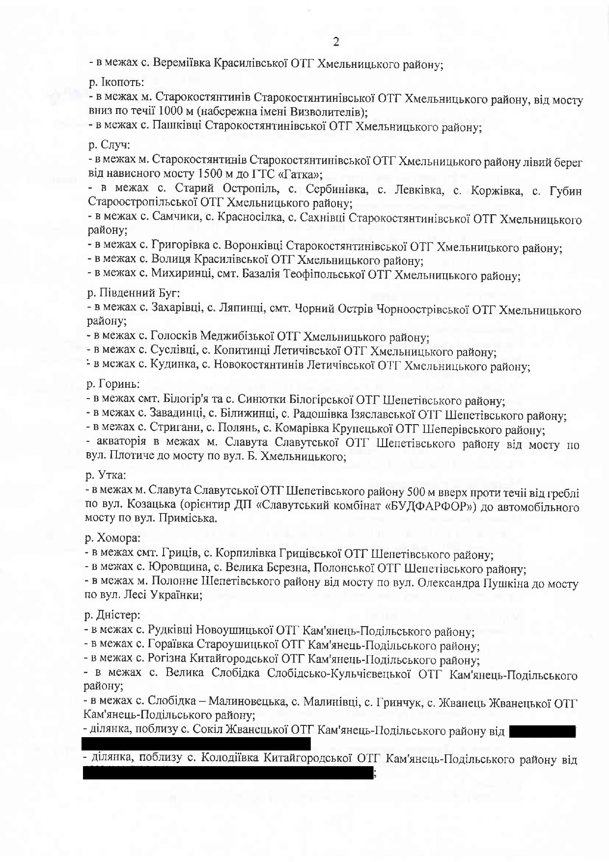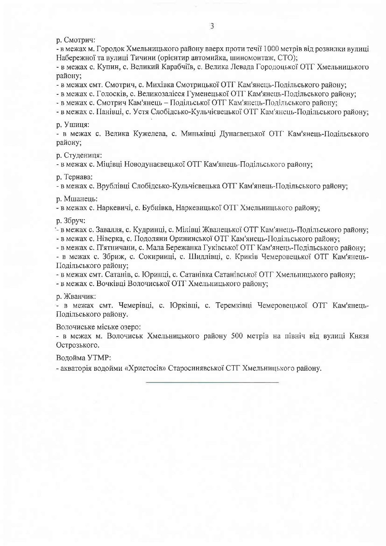 Перелік ділянок затвердило наказом управлінння державного агенства меліорації та рибного господарства у Хмельницькій області.