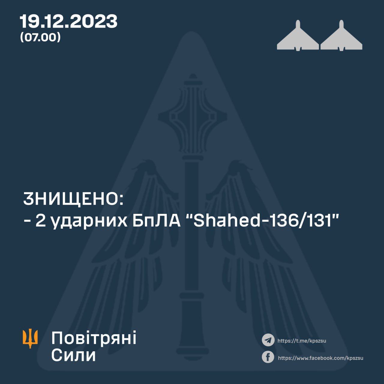 На Хмельниччині знову збили 2 “шахеди”, — Повітряні Сили
