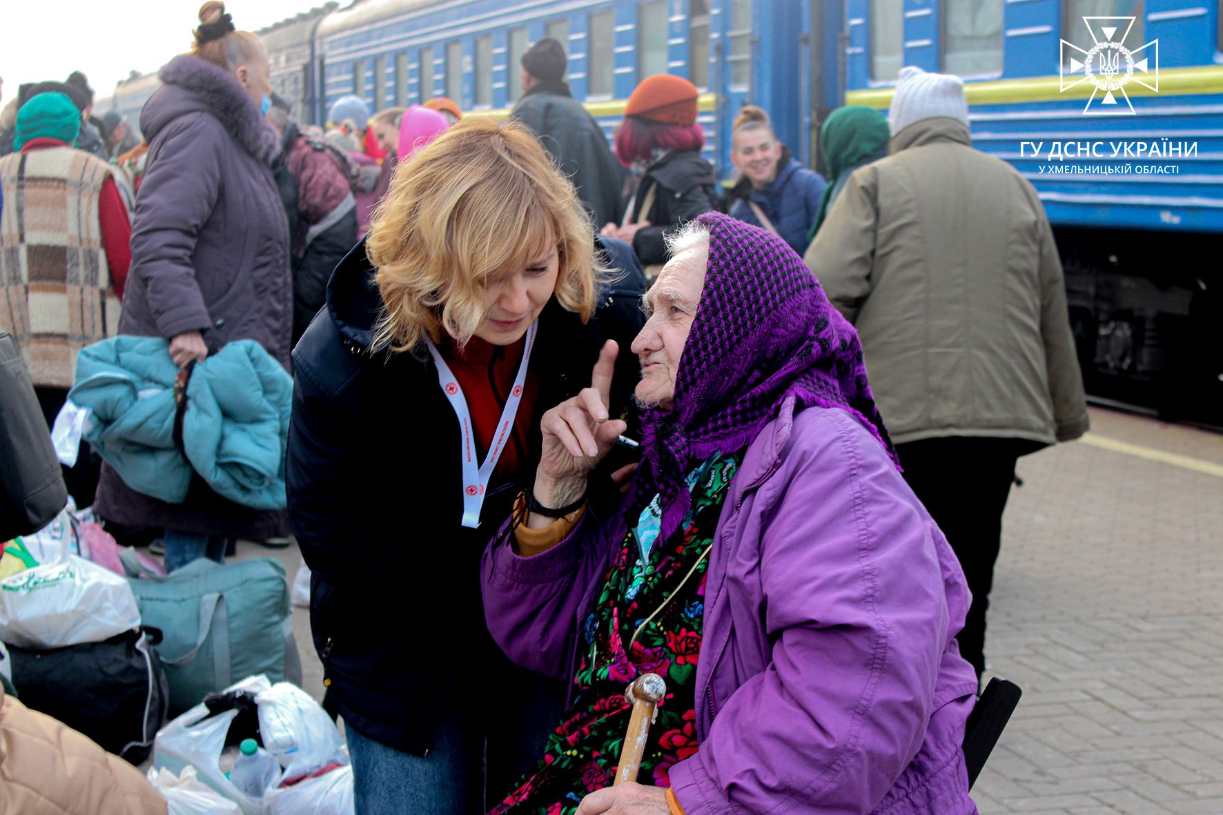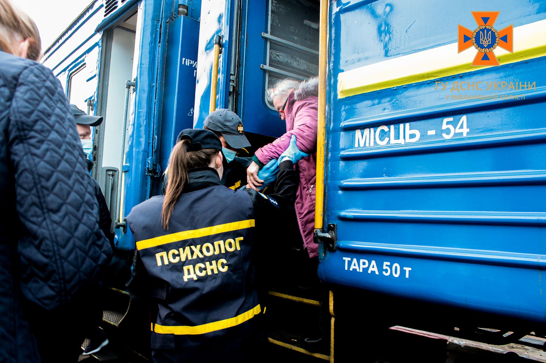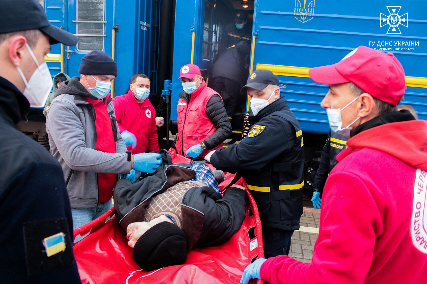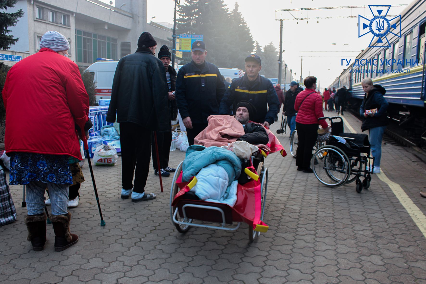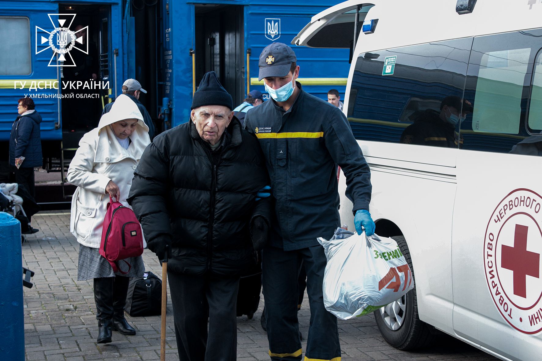 Рятувальники Хмельниччини і вдень, і вночі зустрічають евакуаційні потяги та спільно з медиками та волонтерами забезпечують належну зустріч вразливим категоріям населення.