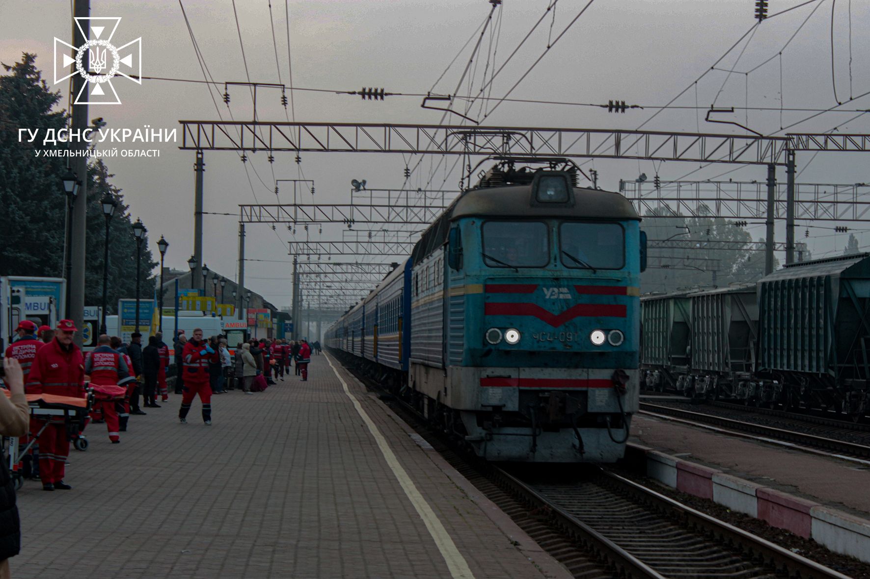 Евакуаційний потяг зустріли рятувальники та психологи ДСНС Хмельниччини, бригади екстреної медичної допомоги, волонтери.